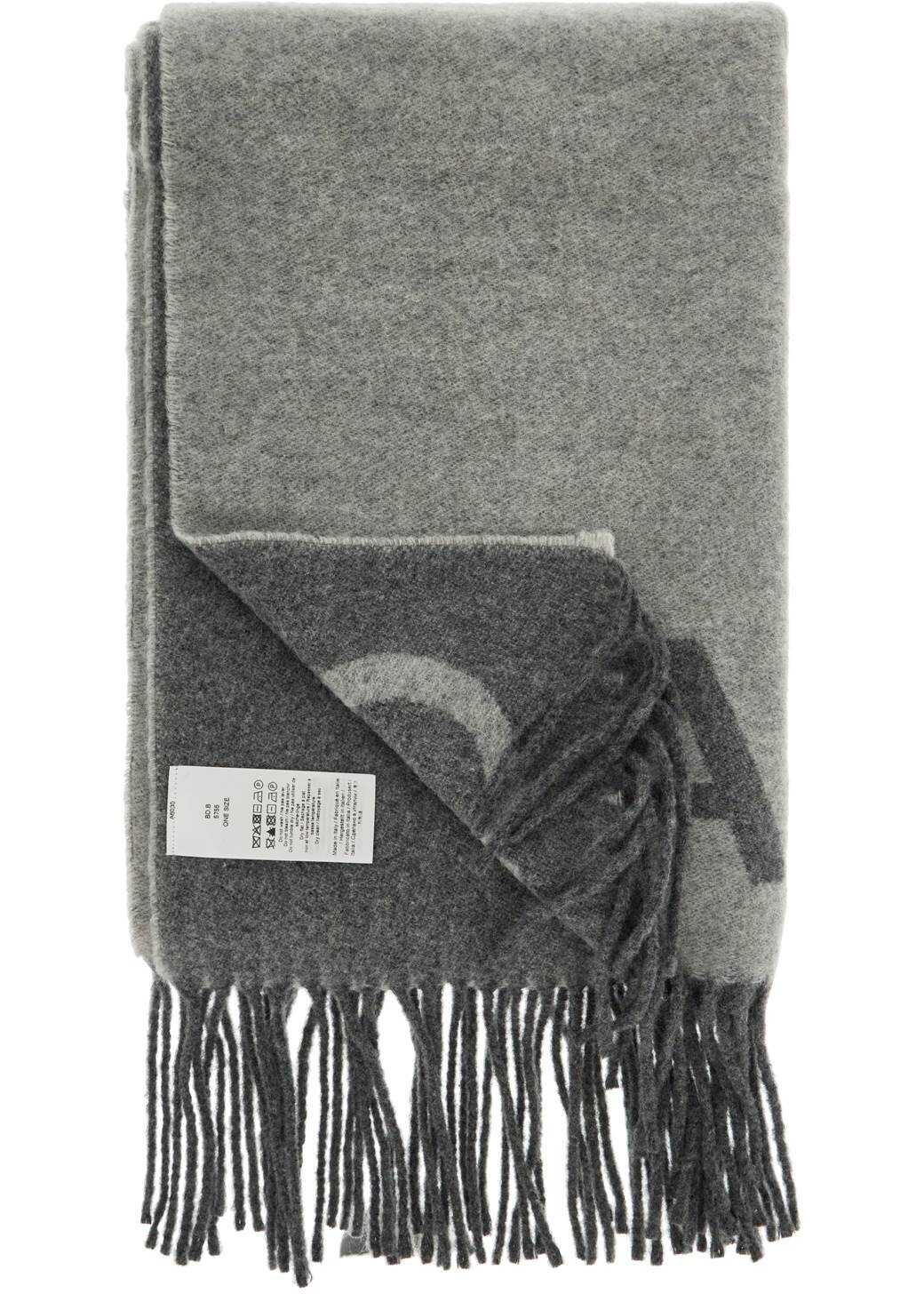 Ganni scarf crafted in recycled-wool with jacquard lettering logo, finished with fringed edges.