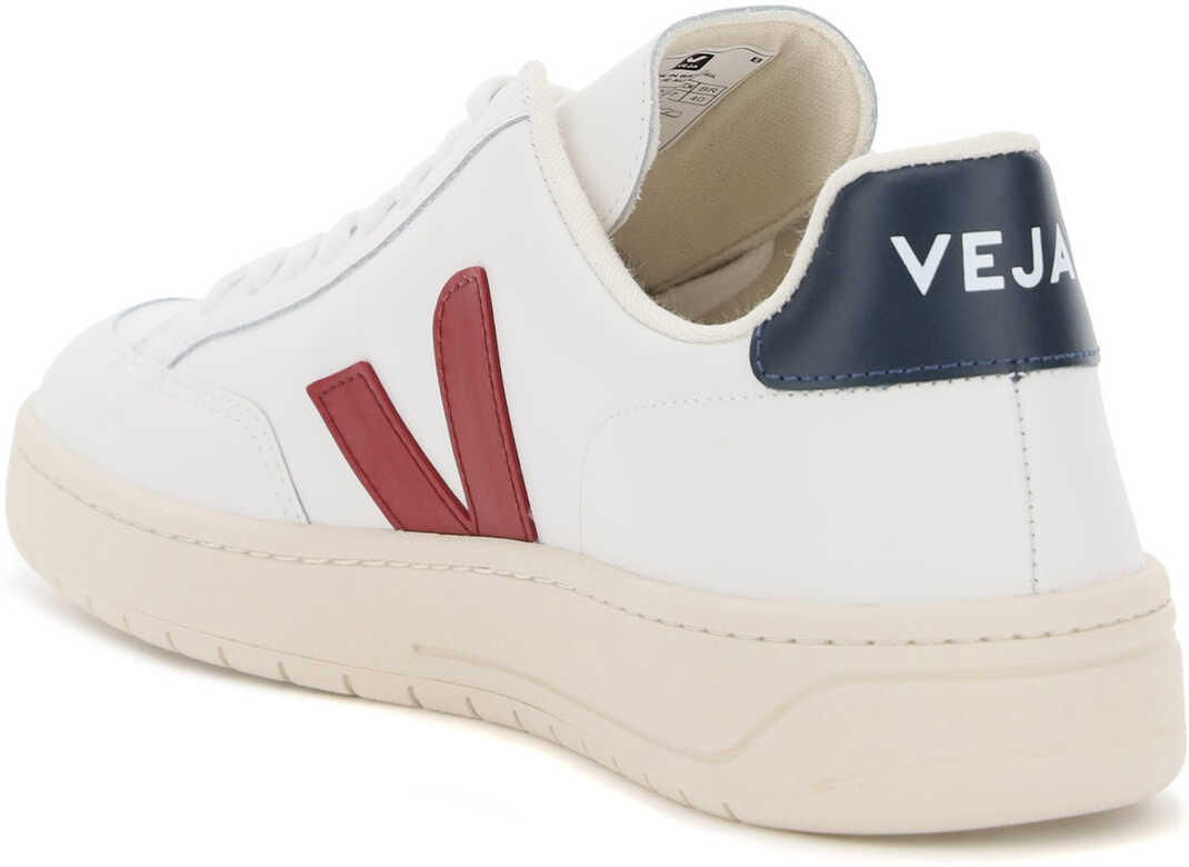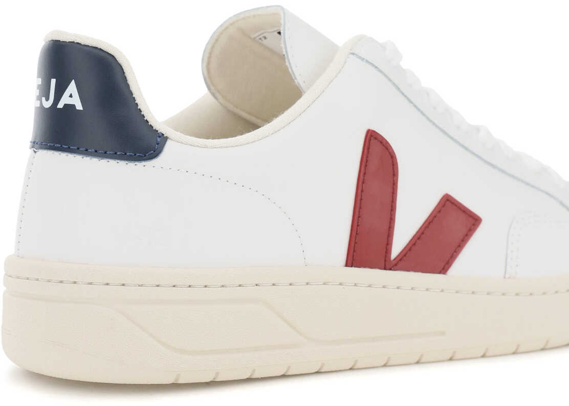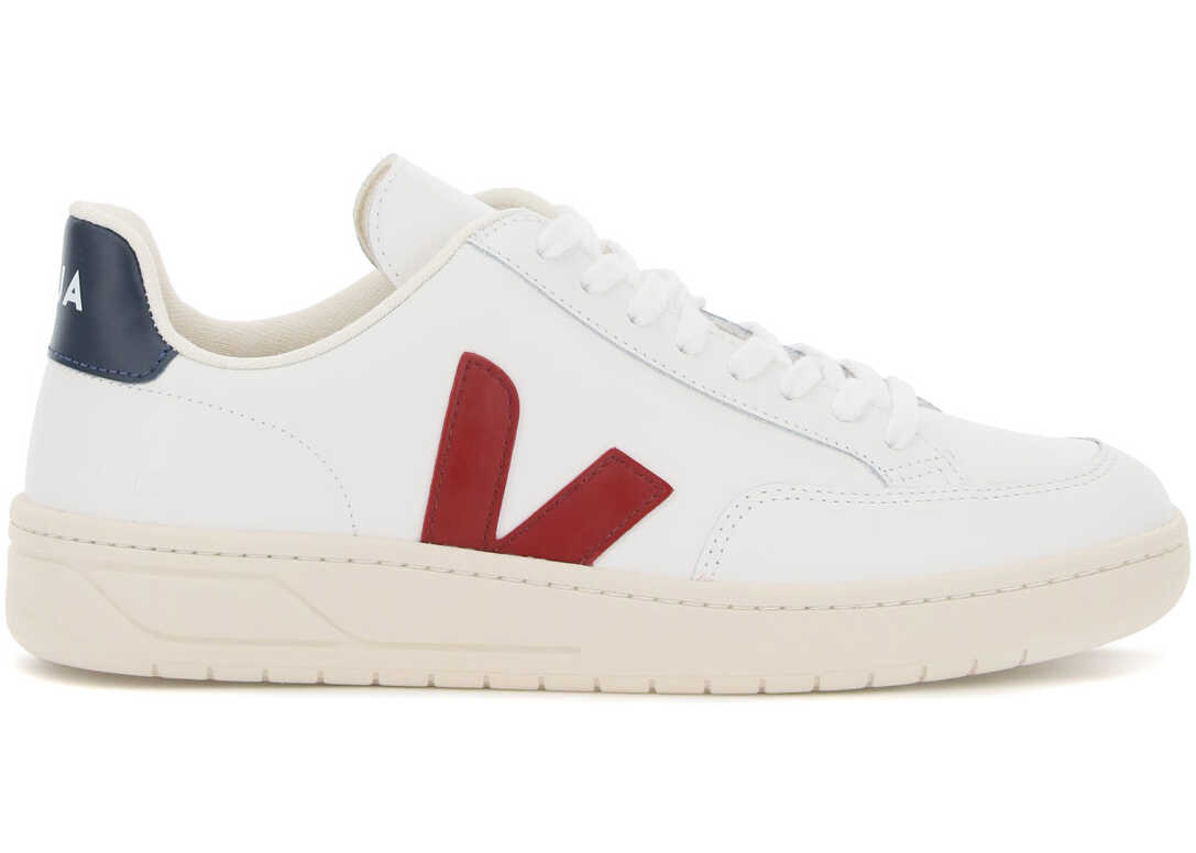 Veja V-12 leather sneakers featured by V monogram in contrasting rubber on the sides. Contrasting heel tab with logo print, logo embossed on the tongue, "V-12" debossed on the side, interior in eco-sustainable fabric, natural rubber sole from the Amazon Forest.