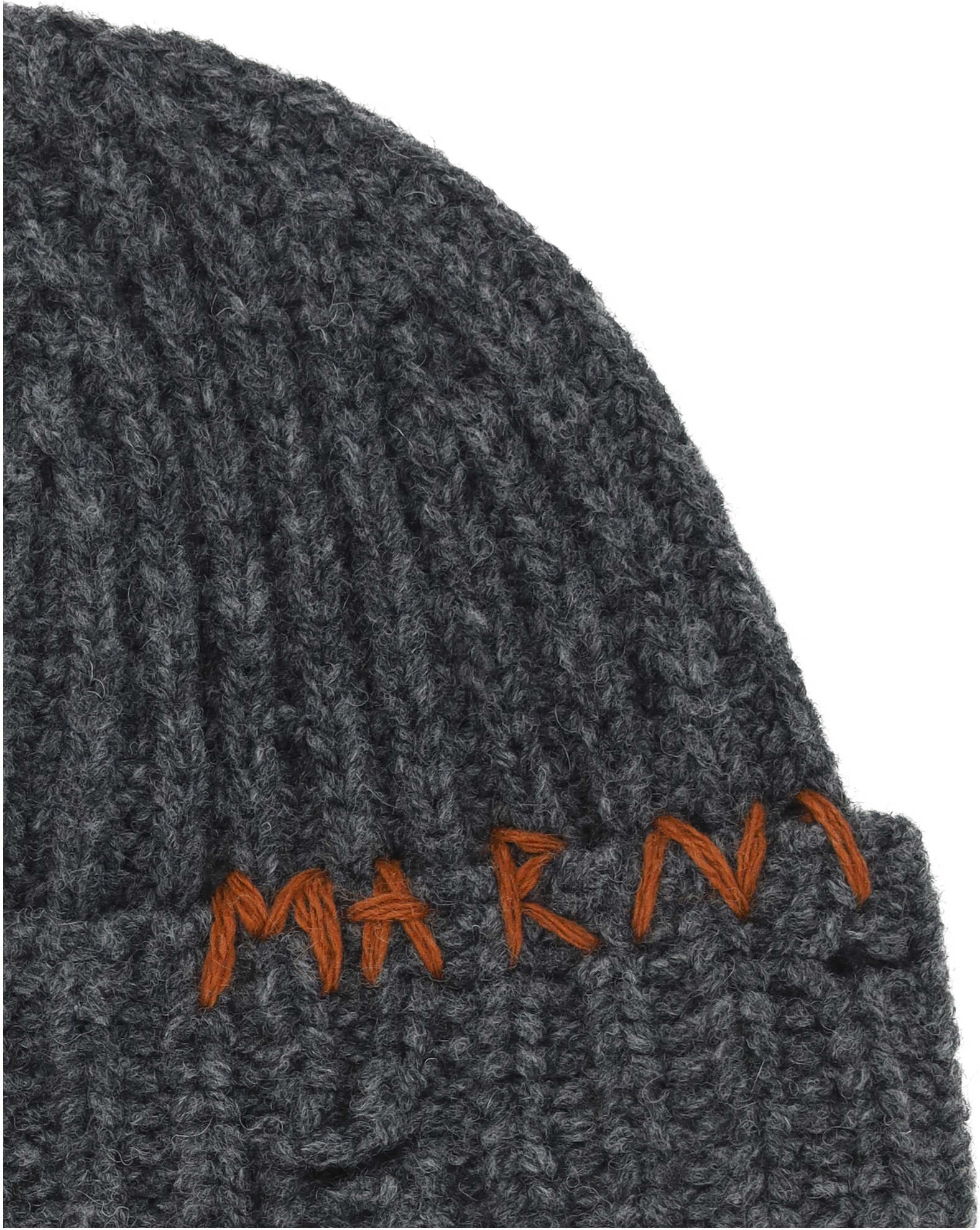 Fleece Wool Beanie Hat by Marni, hem embellished with iconic brand signature embroidered contrast, ribbed design.