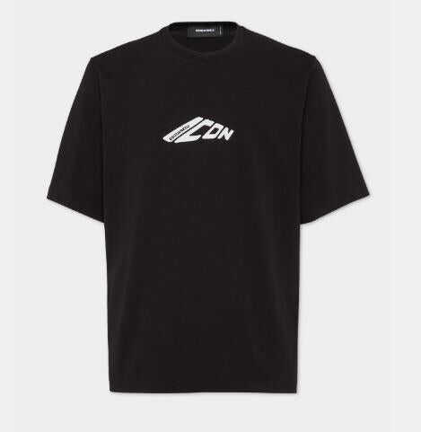 black/white cotton jersey texture graphic print to the front crew neck short sleeves straight hem