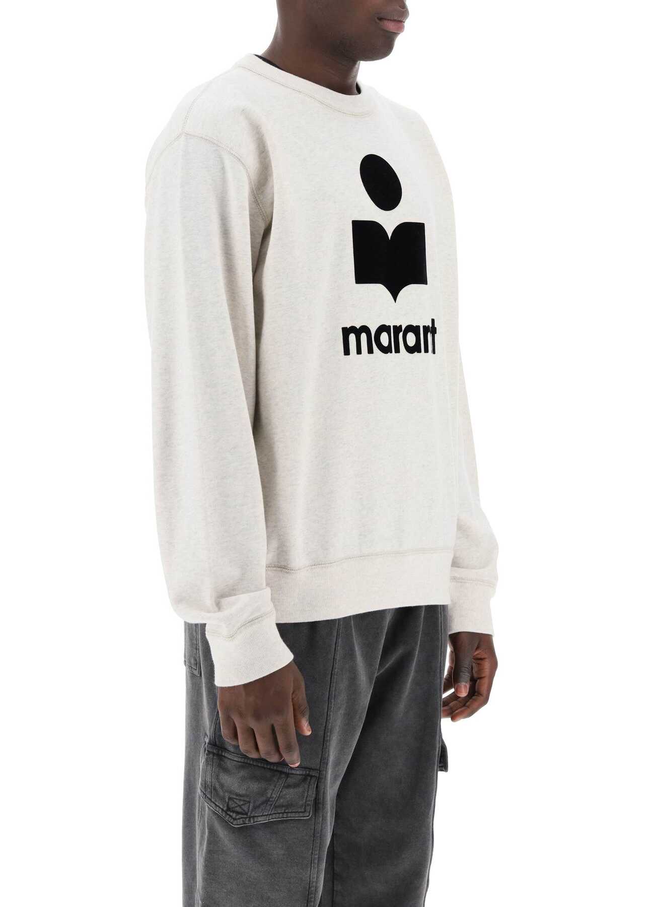 Marant crew-neck sweatshirt in loop-back cotton-blend jersey, embellished with a contrast flocked logo at center chest. Cut to an oversized fit, it is finished with overlock stitching and rib knit trims. The model is 187 cm tall and wears a size L.