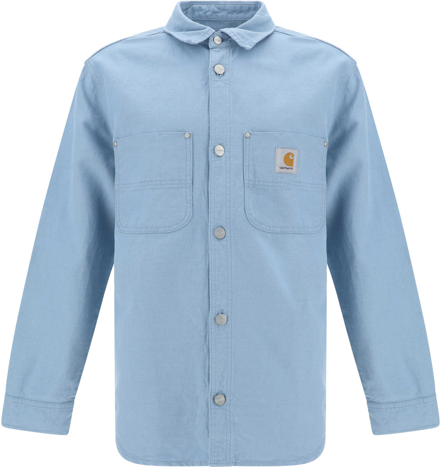 Cotton Walter Jac Shirt by Carhartt Wip, classic collar, front button closure, two patch pockets on front, iconic brand monogram patch on front, adjustable button cuffs, monochrome pattern, regular fit.
