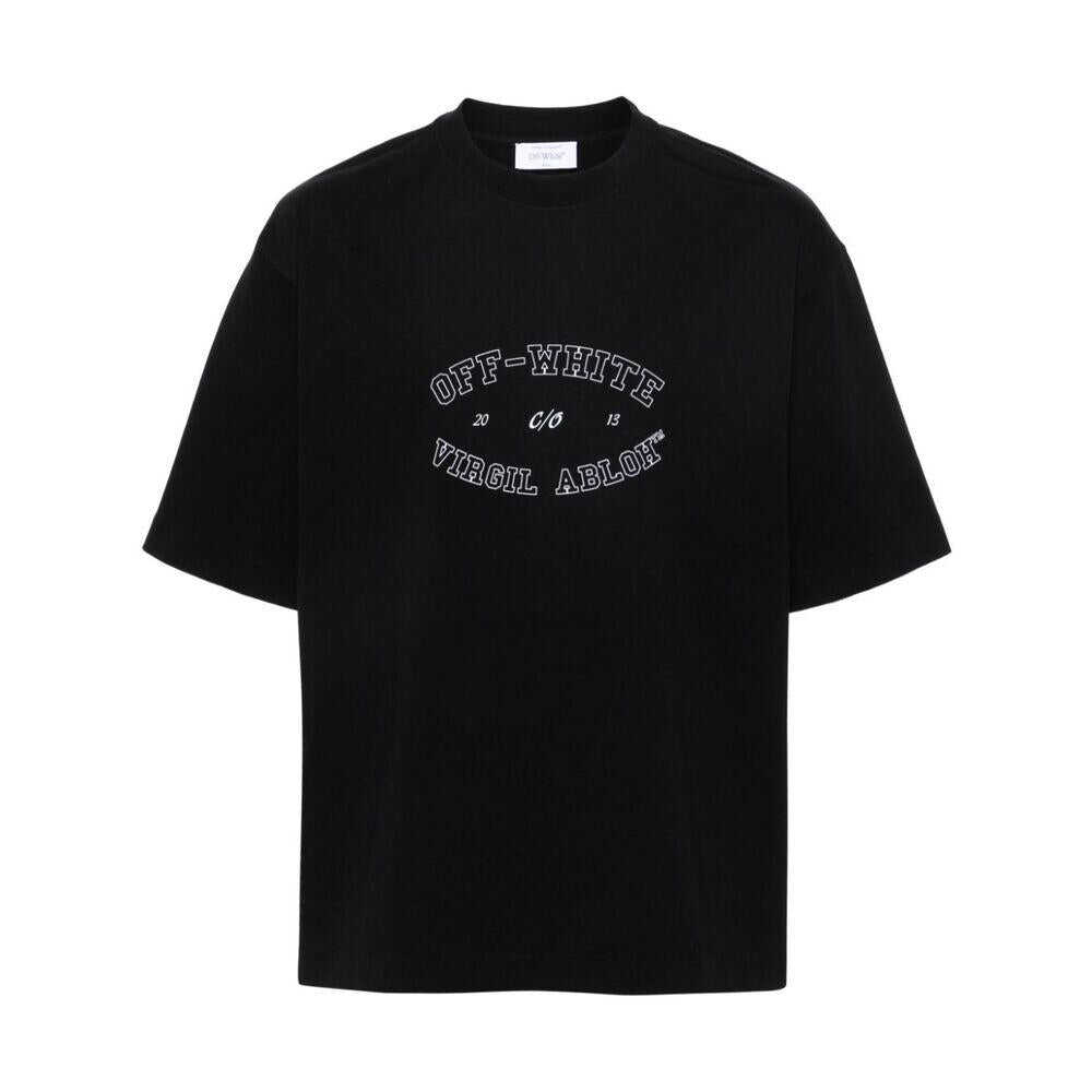 Black cotton jersey texture crew neck short sleeves logo print at the chest short side slits straight hem