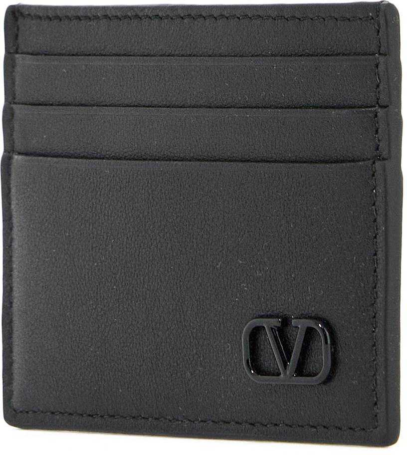 Valentino Garavani card holder made of smooth leather with iconic tone-on-tone lacquered VLogo Signature. Organized with three credit card slots on each side and a central slit pocket.