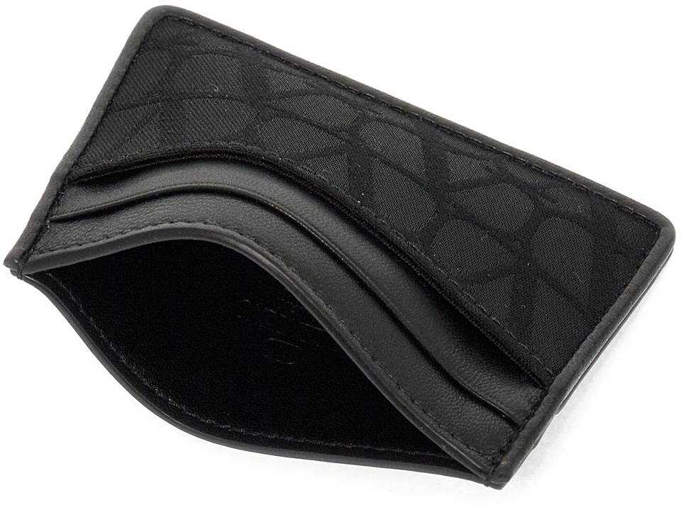 Valentino Garavani card holder made of leather and Toile Iconographe jacquard fabric, featuring two credit card slots on the front and back and a central slip pocket.