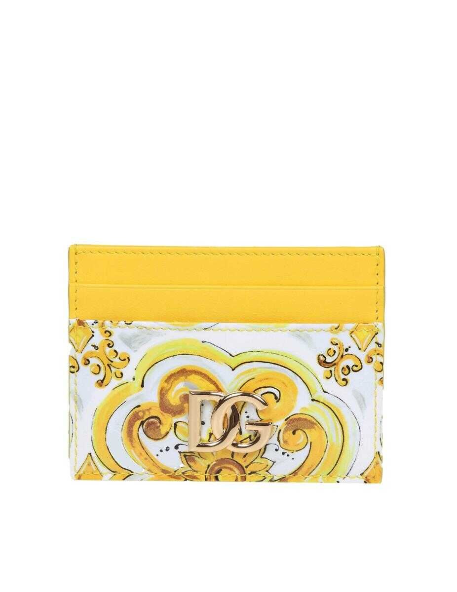 Shiny calfskin card holder Yellow color Embossed logo detail Four card slots Central compartment Measures: Width 10cm Height 7cm