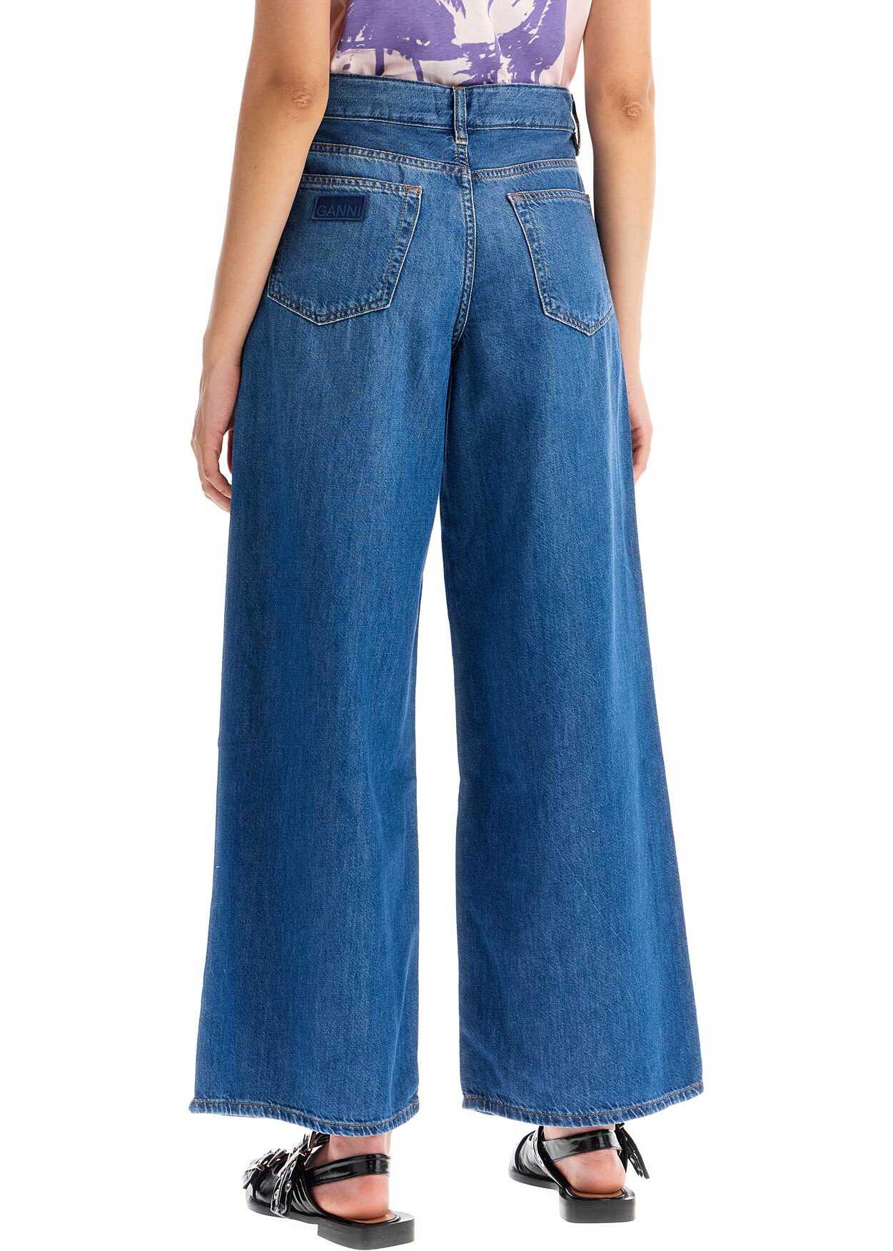 These Ganni five-pocket jeans feature a baggy fit with wide legs, made from lightweight organic cotton and lyocell denim. Finished with contrast stitching, they have belt loops and a front closure with a branded zip and button. The model is 177 cm tall and wears size 26.