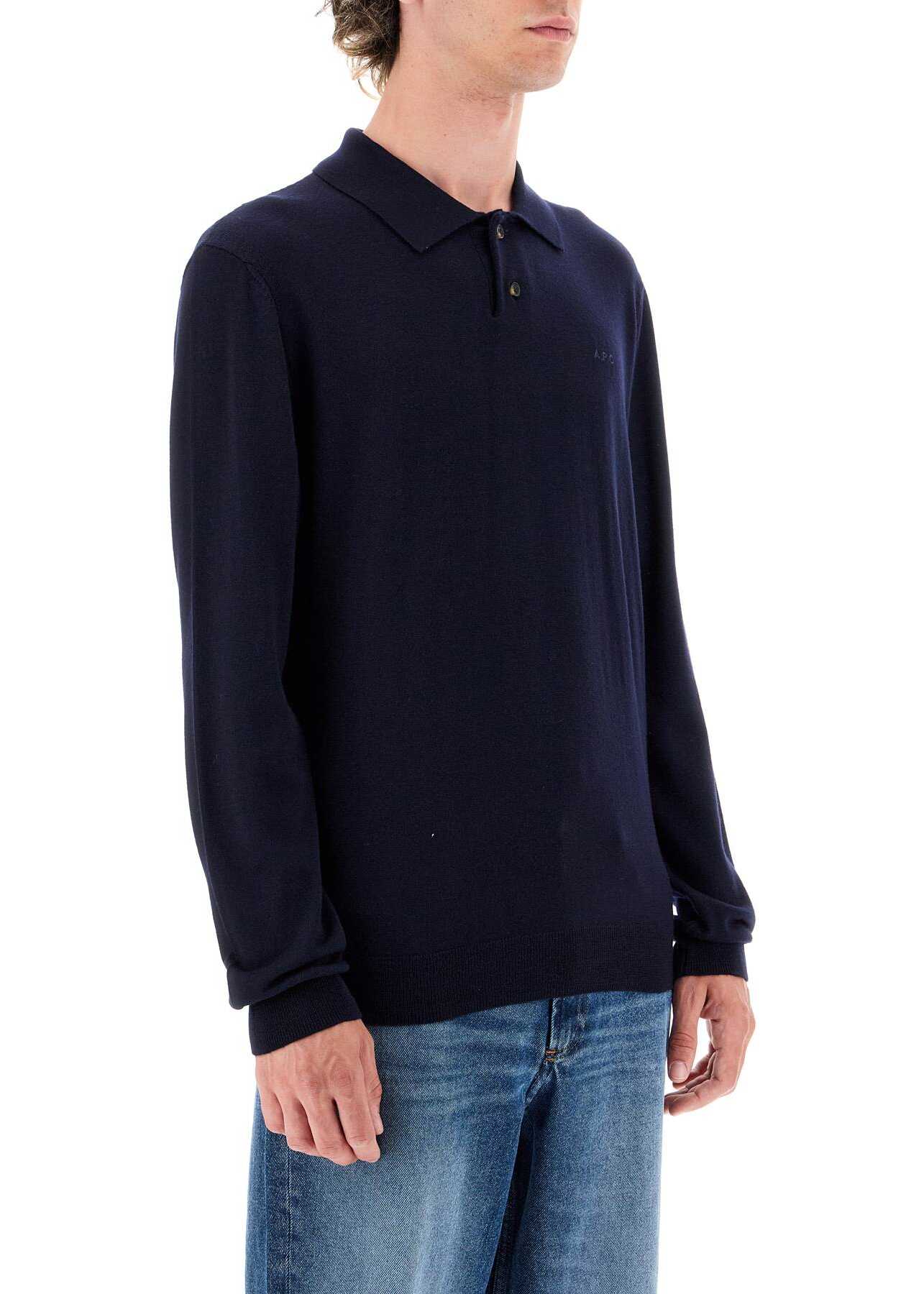 This A.P.C. pullover is made of lightweight pure wool yarn and features a polo-style design with a flat collar and two-button closure. The garment is finished with ribbed details and an embroidered logo in tone on the chest. Regular fit. The model is 187 cm tall and wears size L.
