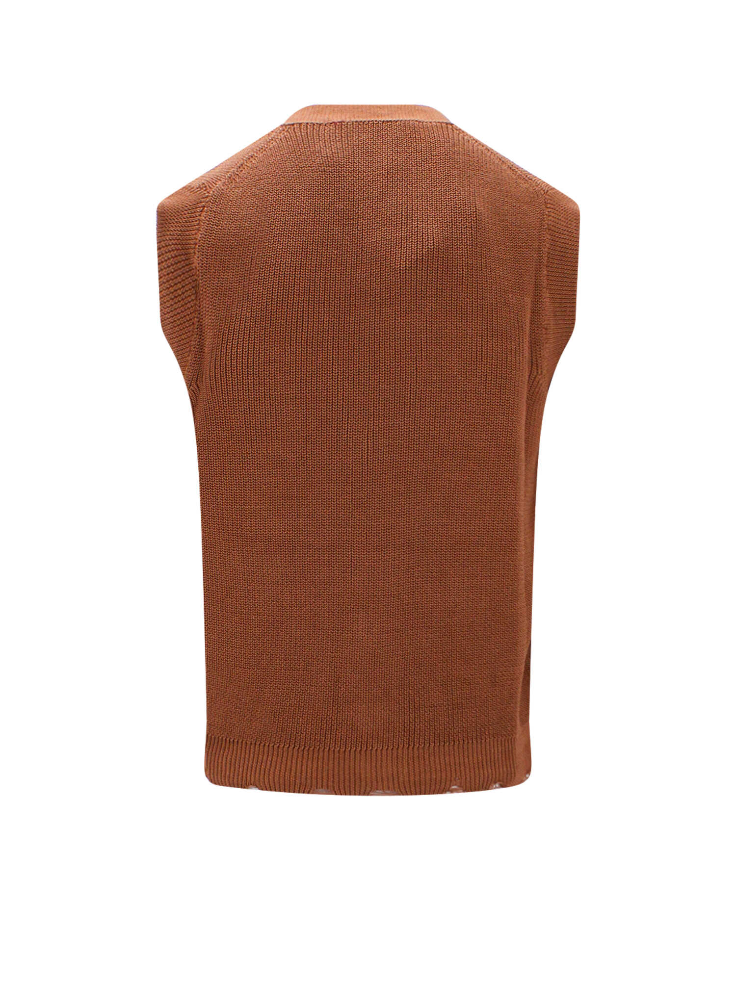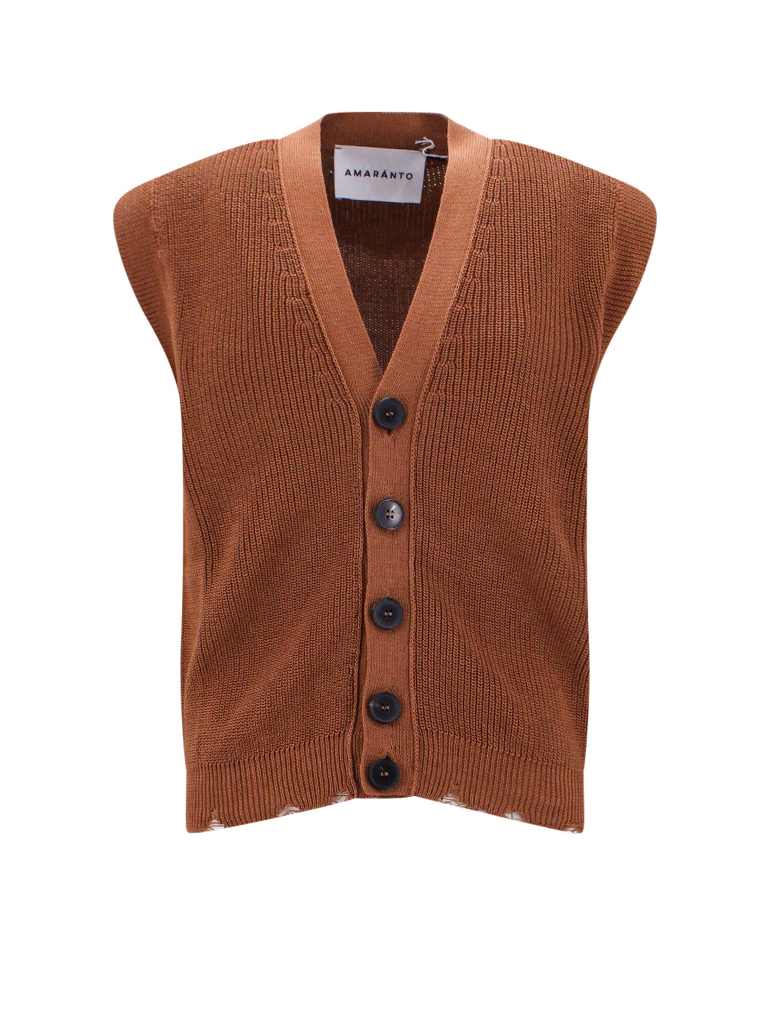 Upgrade your wardrobe with this stylish Cotton vest with fringed bottom from AMARANTO. Made in Italy from 100% Cotton, this V-neck vest features a button closure and ribbed fabric. Perfect for any occasion, this men's knitwear comes in Brown color and size range of LETTERS. Add a touch of sophistication to your outfit with AMARANTO's Cotton vest with fringed bottom.
