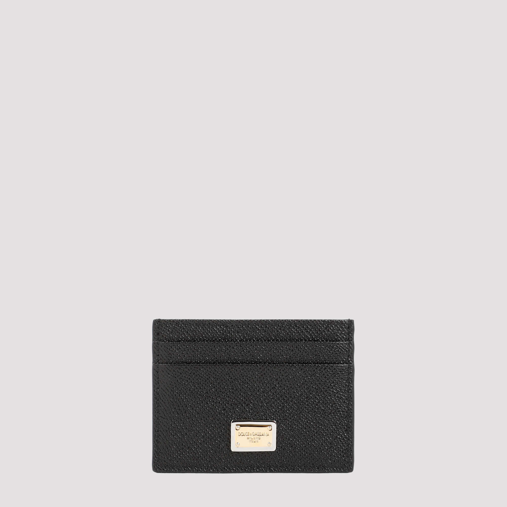 Dolce & Gabbana Black Leather Cardholder with logo plaque. Black leather, logo plaque on front, 6-card slots, tonal stitching.