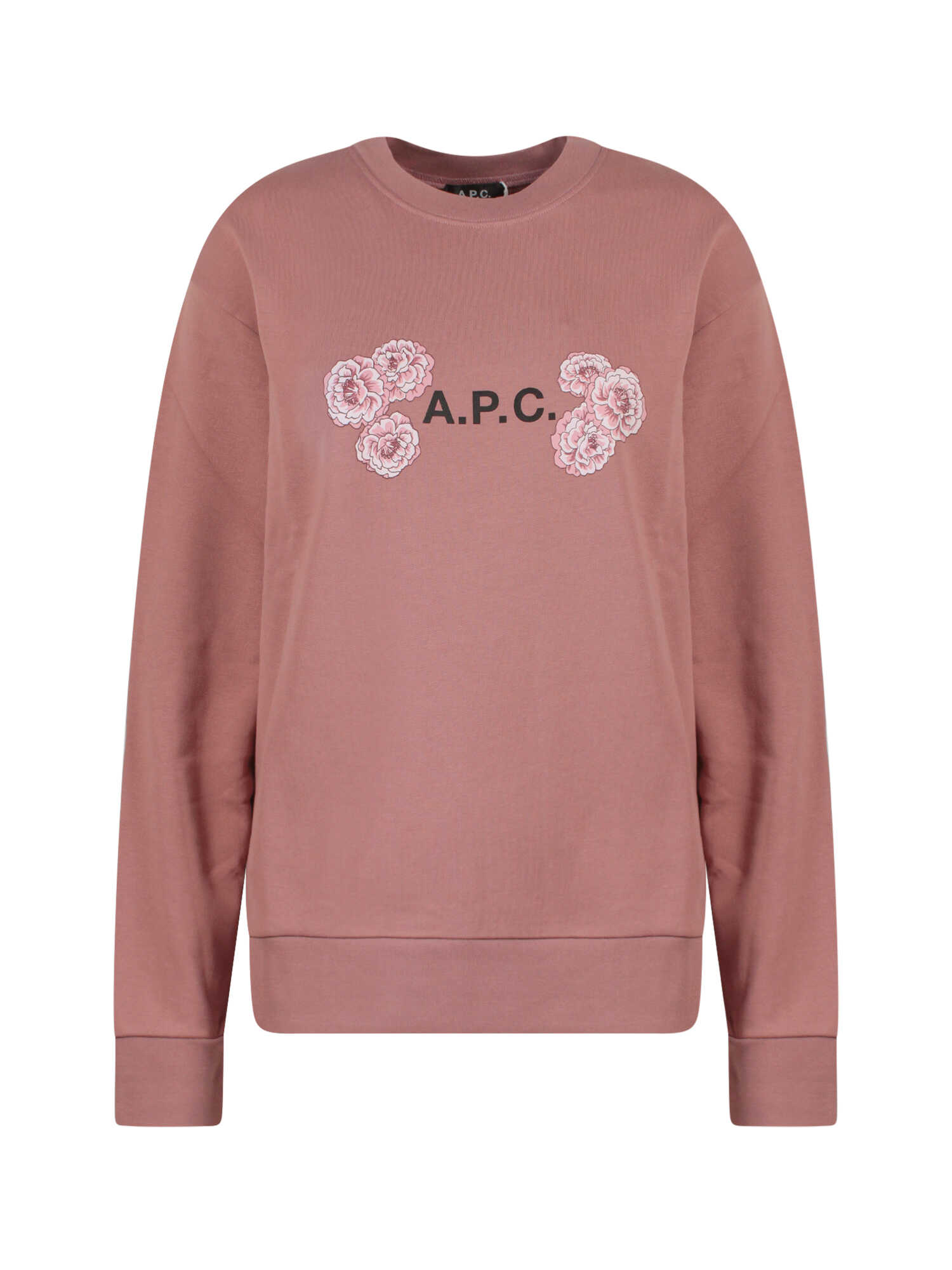 Stay cozy and stylish in this pink organic cotton sweatshirt from APC. The ribbed crew-neck and cuffs provide a comfortable fit while the front logo adds a trendy touch. Perfect for a casual day out or lounging at home. Available in various sizes. Custom tariff code: 61142000.