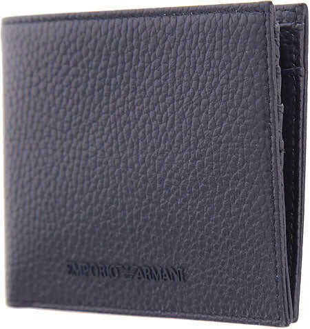 DESCRIPTION: Bi-fold wallet Emporio Armani Logo on Front, Banknote outlet, Card Slots. . . MESURES: height: 9 cm - lenght: 13 cm. . MAIN COLOUR : blue. COMPOSITION: leather