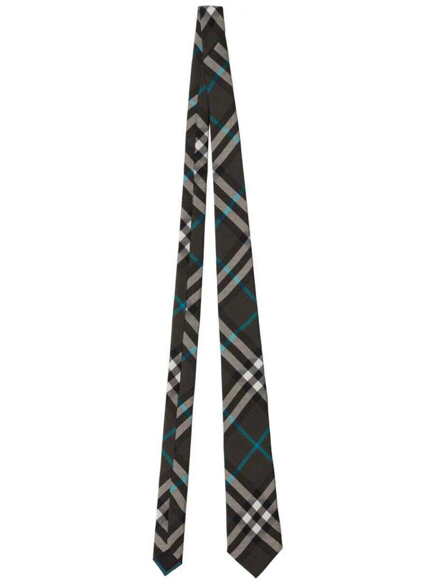 olive green/multicolour silk nova check pattern pointed tip rear keeper loop