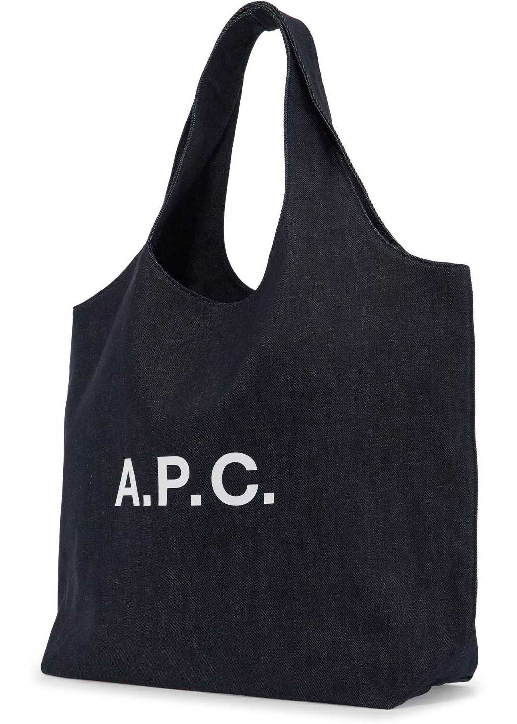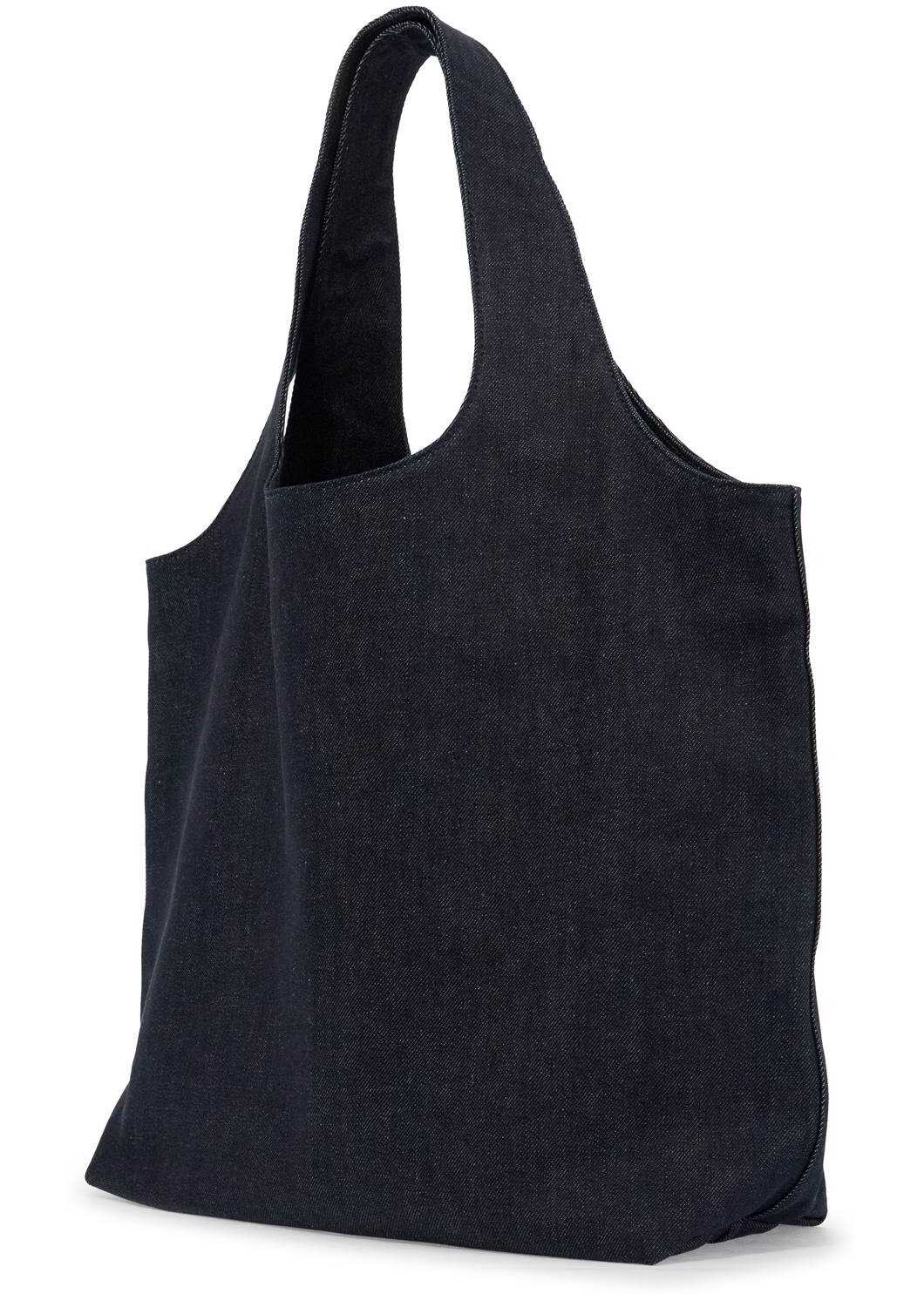 A.P.C. Ninon tote bag crafted in cotton denim with contrasting printed logo on front. Double handle and fabric interior with one open pocket.
