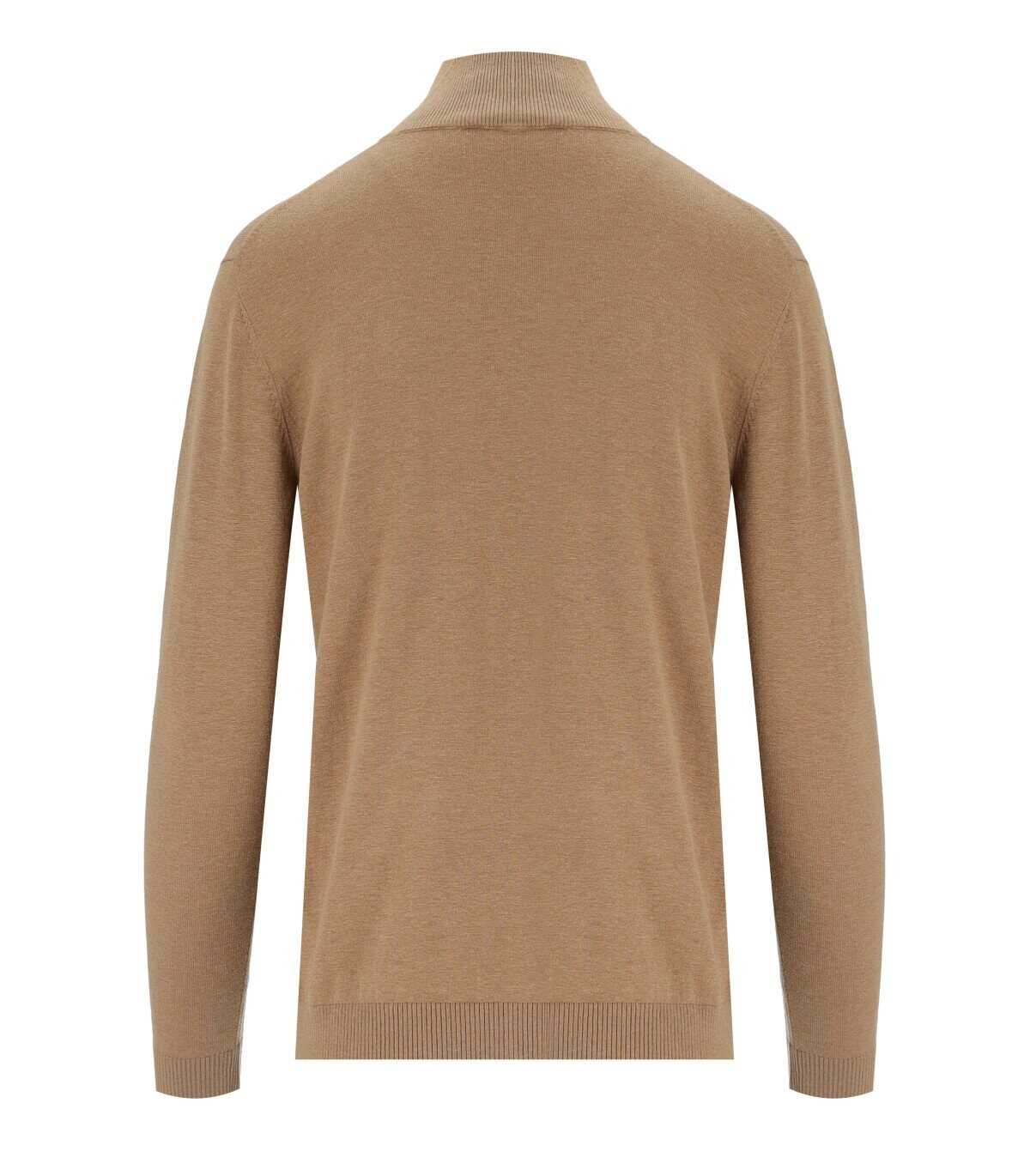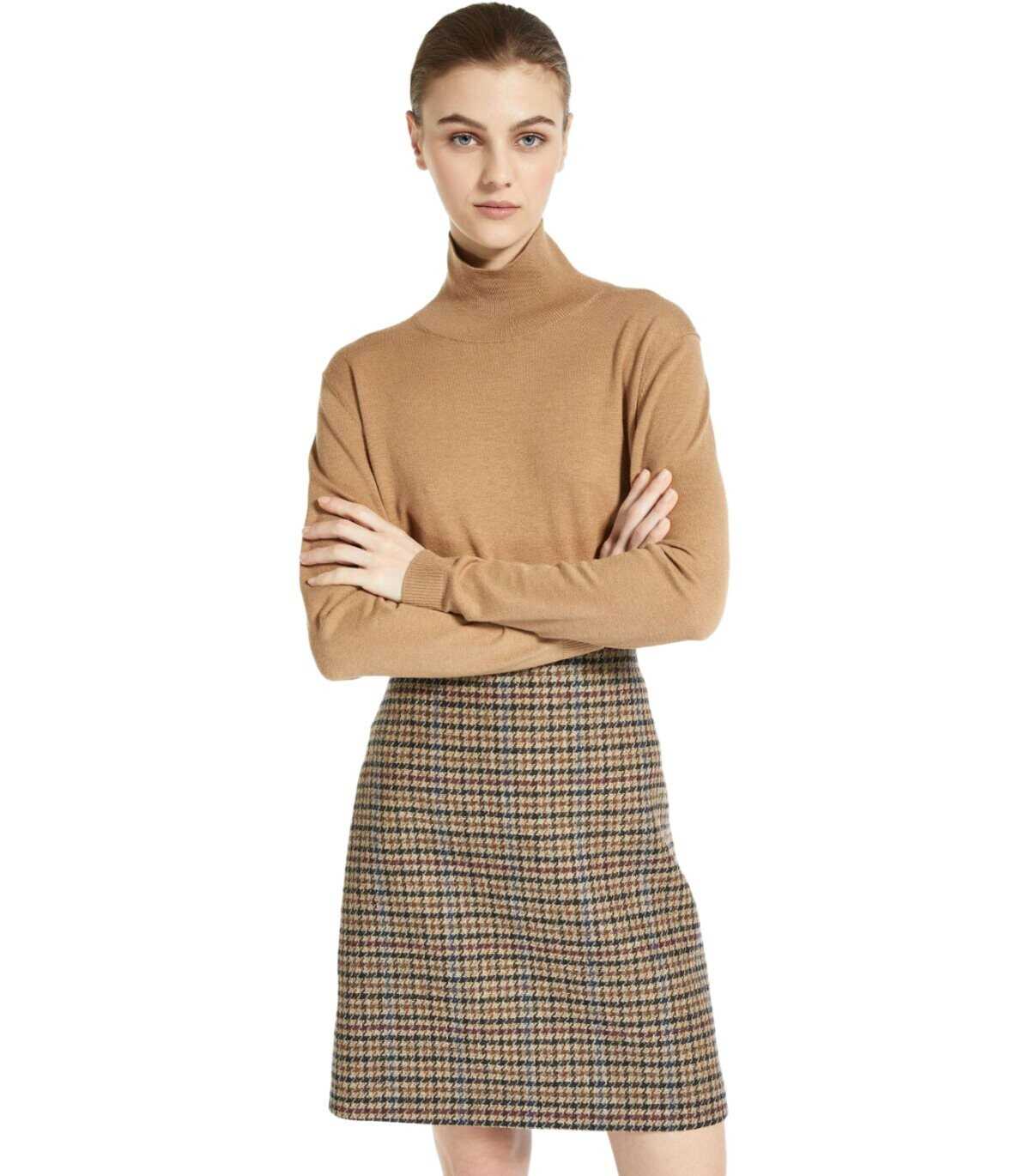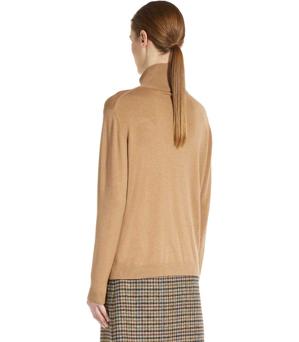 Kiku sweater by Max Mara Weekend made of camel-colored silk and wool blend, featuring ribbed turtleneck, cuffs and hem. Soft fit.