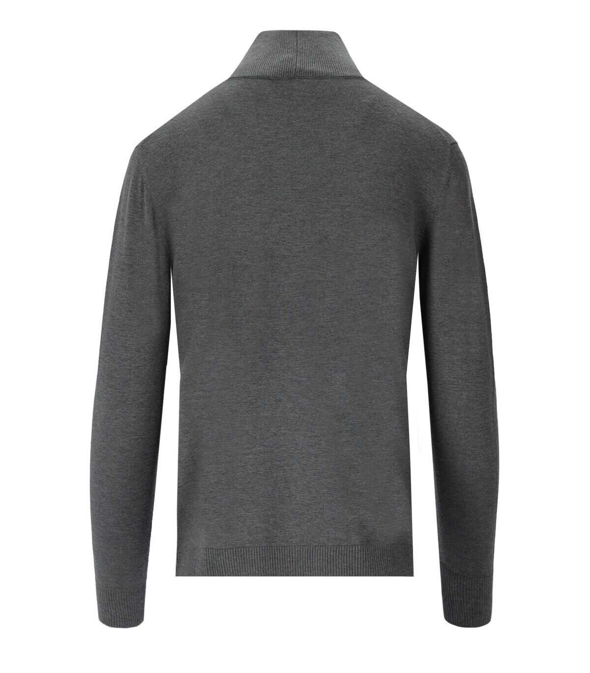 Kiku jumper by Max Mara Weekend made of dark grey mélange wool and silk blend. Ribbed high collar, cuffs and hem. Soft fit.