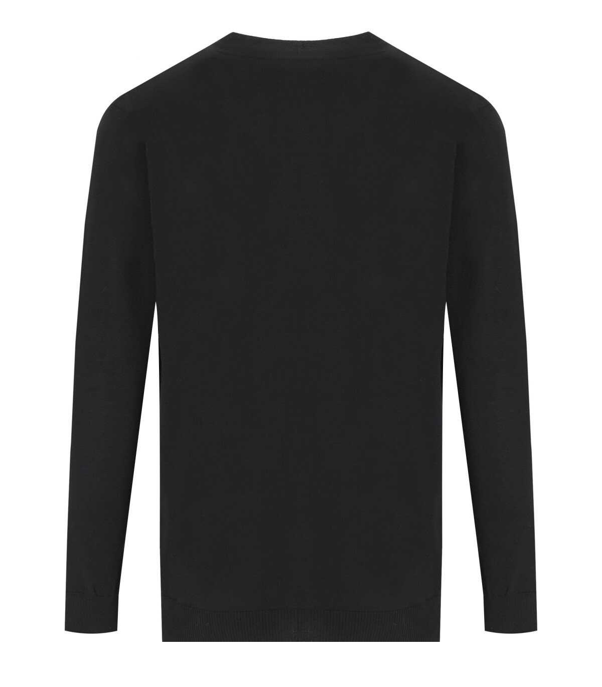 Amaranto cardigan made of lightweight black cotton yarn. V-neck, detail with contrast stitching on the side and button closure. Ribbed cuffs and hem. Soft fit.