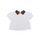 White t-shirt for girls with contrasting web striped collar, short balloon sleeves, gathering on the neckline, back buttons.