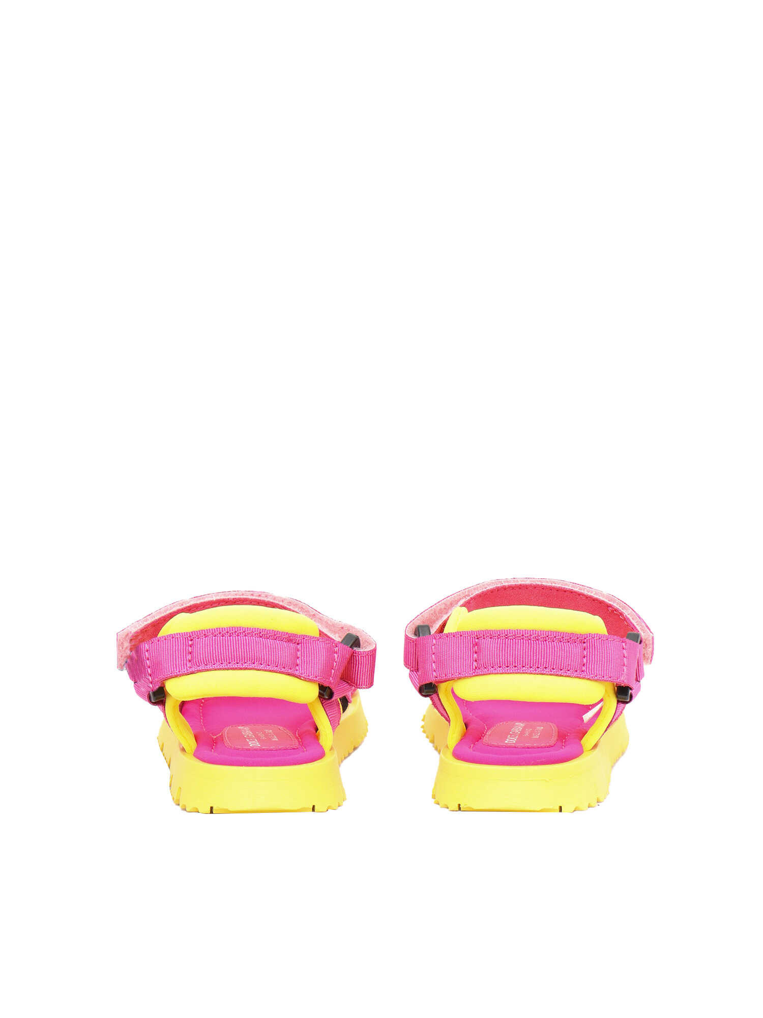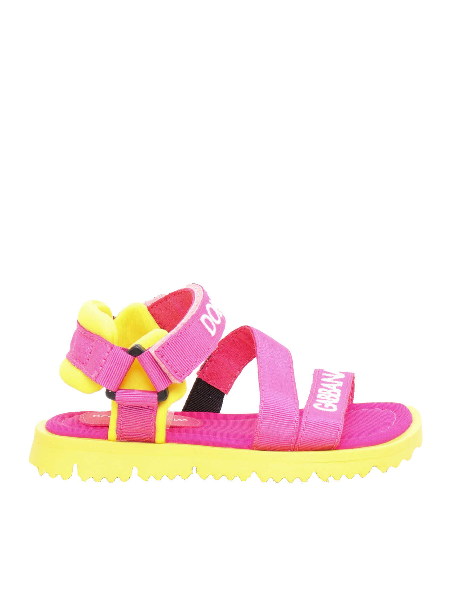 Pink and yellow D&G girl's sandal in lycra with rips and contrasting logo.