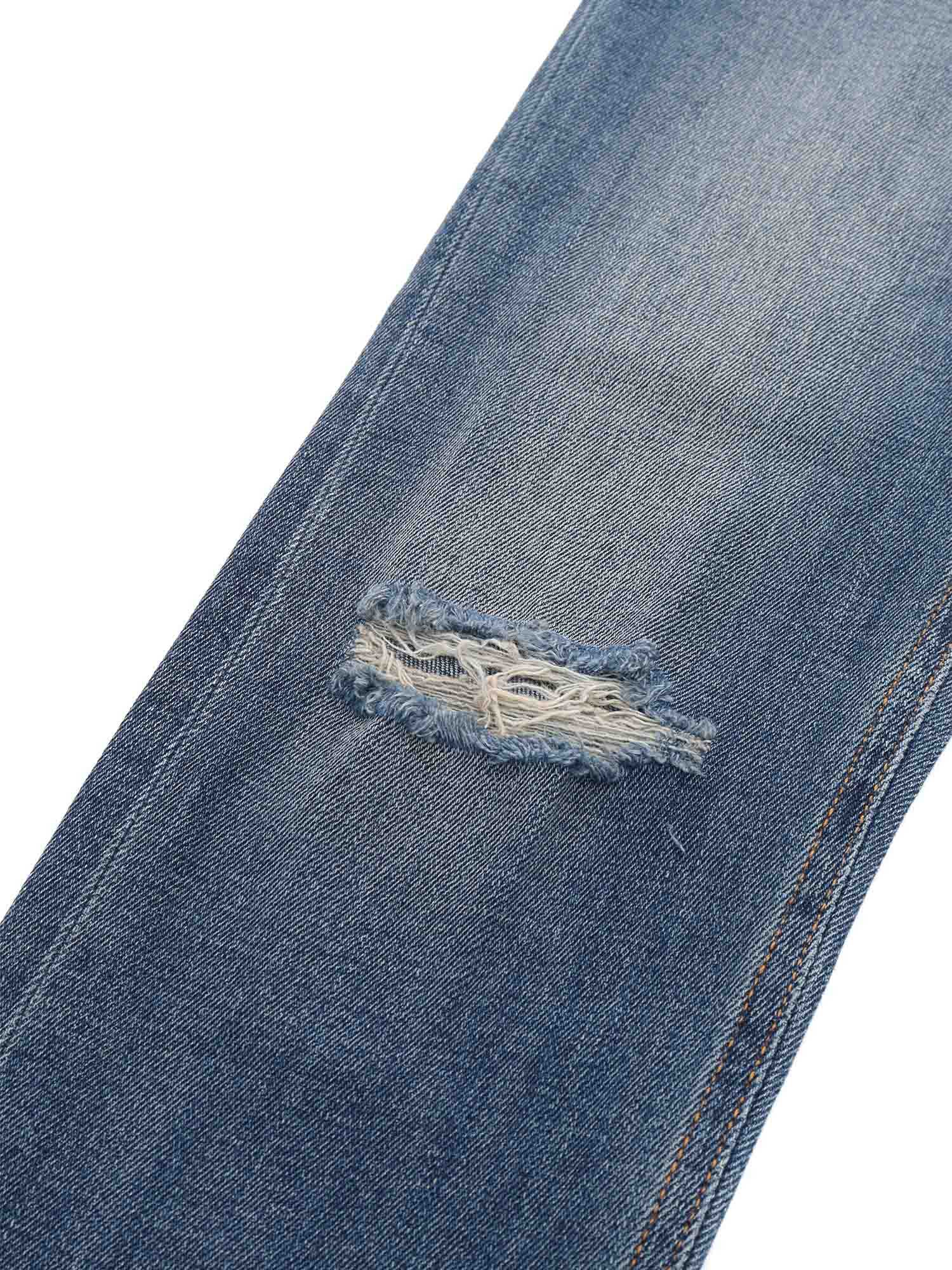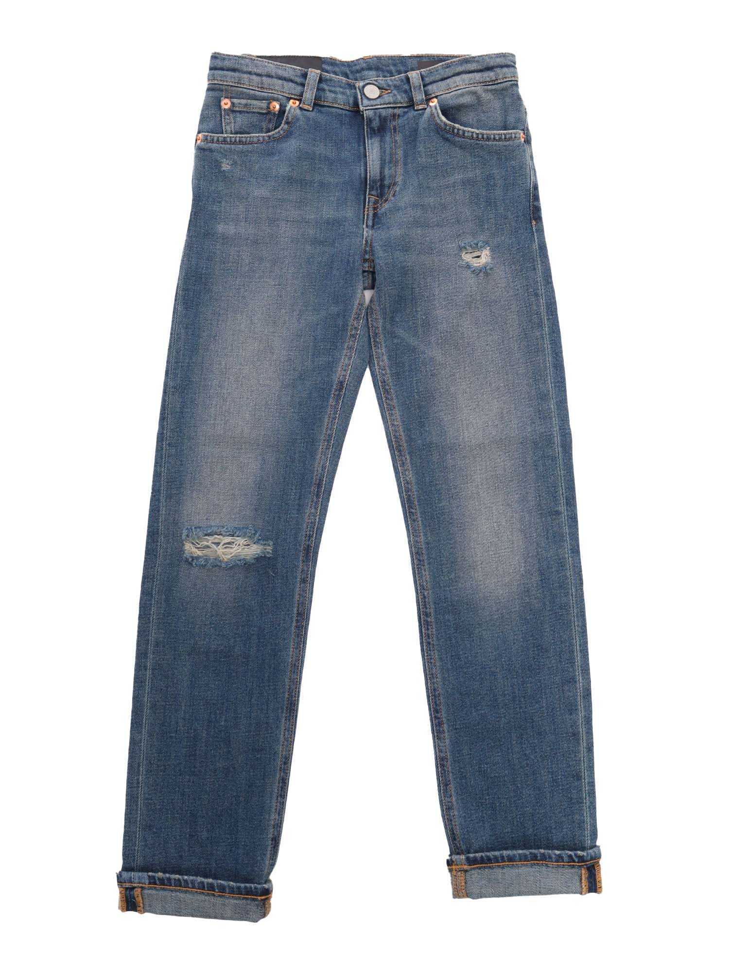 Stretch cotton jeans, 5 pockets, belt loops, stone washed, worn-out effect, logo