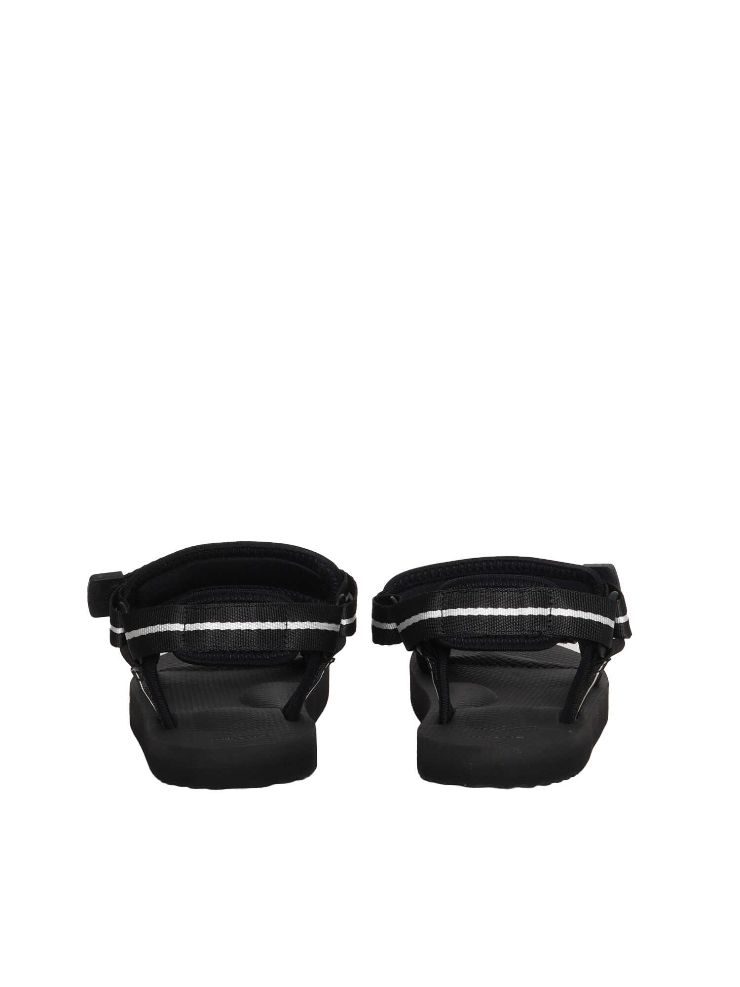 Palm Angels x Suicoke black sandals with contrasting black rubber sole, 3 tears, patch logo label.