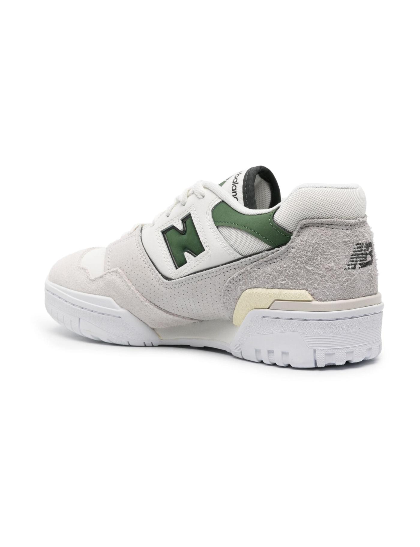 New Balance debuted its 550 sneakers in 1989, with the model quickly becoming an on-court classic before being archived and re-released as part of the brand’s lineup in 2021. This iteration of the enduring style is crafted from green and white leather with suede trims. Underfoot, an EVA wedge ensures lightweight cushioning.