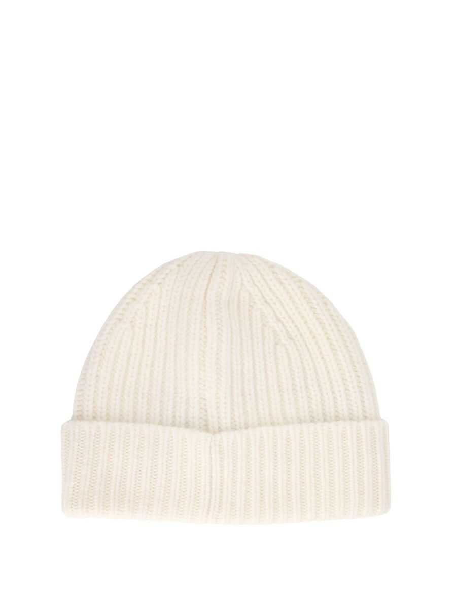 White beanie in warm Golden Goose wool. Frontal black logo appliqué. Ribbed construction. Stretch design. - Golden Goose - white - in wool - men's - black logo printed on the front