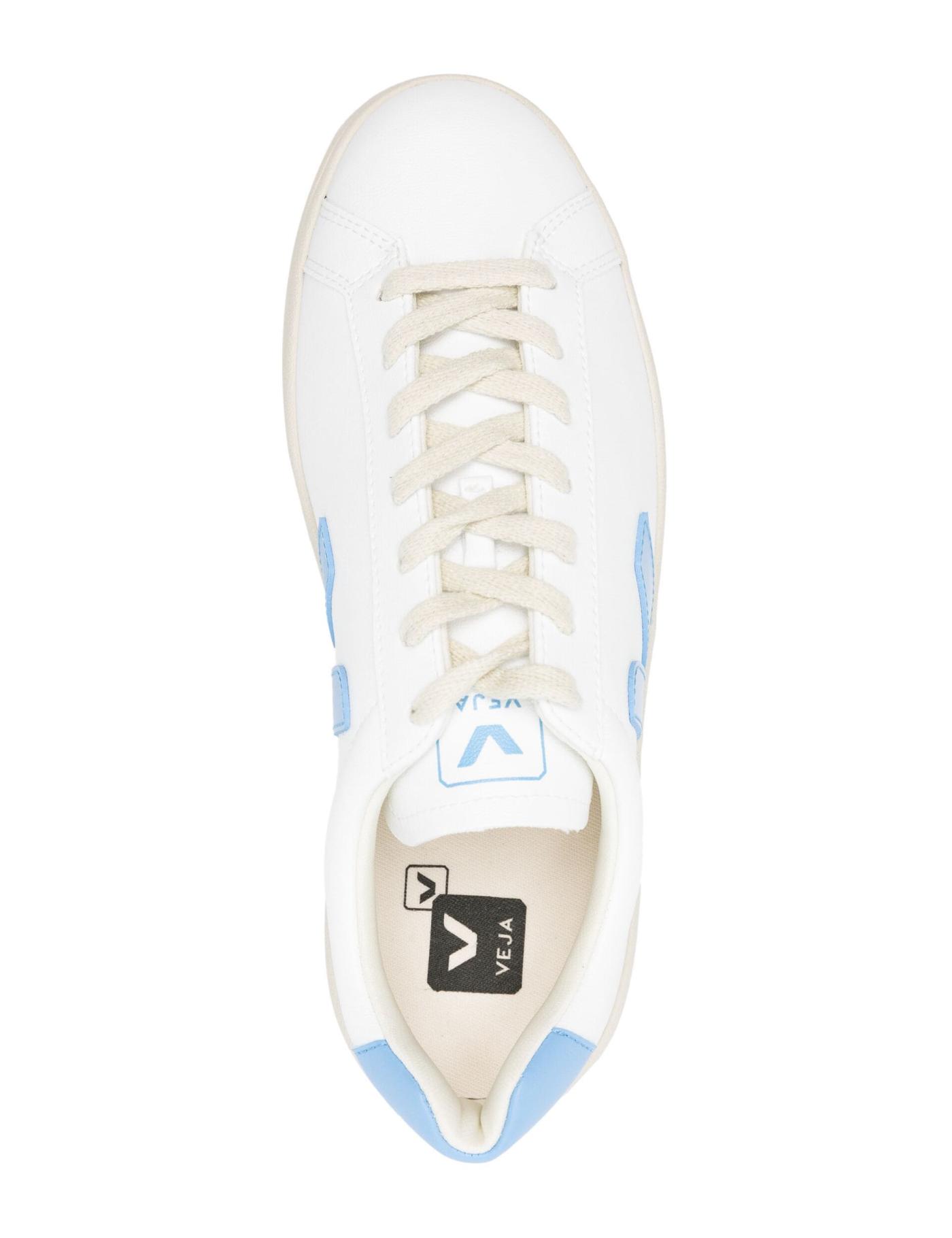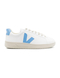 VEJA's white low-top sneakers are minimally patched with the signature V logo on the sides in contrasting blue. Underfoot, a rubber sole adds comfort and stability to the design.