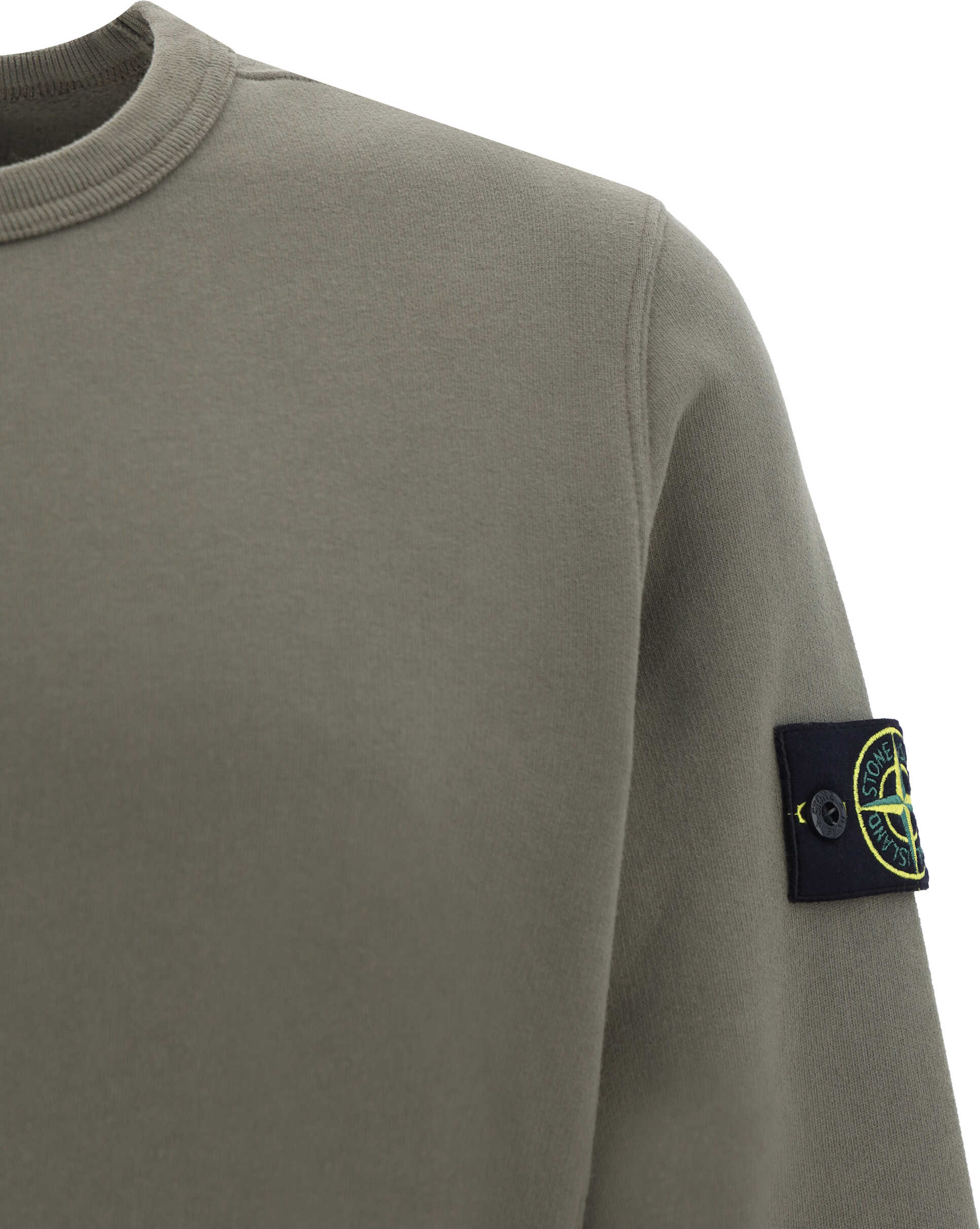 Cotton Sweatshirt by Stone Island, ribbed crew neck, ribbed cuffs, ribbed hem, iconic brand logo patch applied in contrast at left sleeve, monochrome design, regular fit.