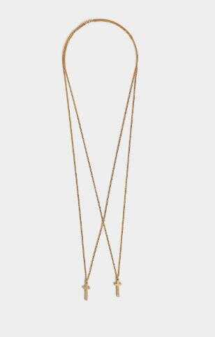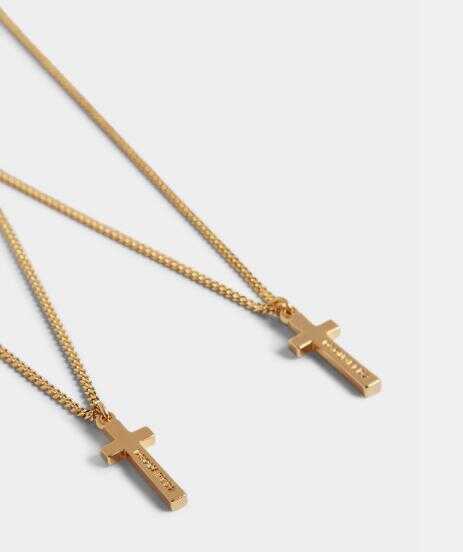 The Caten twin designers are constantly revamping DSQUARED2's brand history in amusing and unexpected ways, presenting bold colours and quirky designs along with their signature luxe detailing. Crafted in Italy from gold-toned brass, this striking necklace from DSQUARED2's SS18 collection features gold-tone hardware and a double cross pendant.