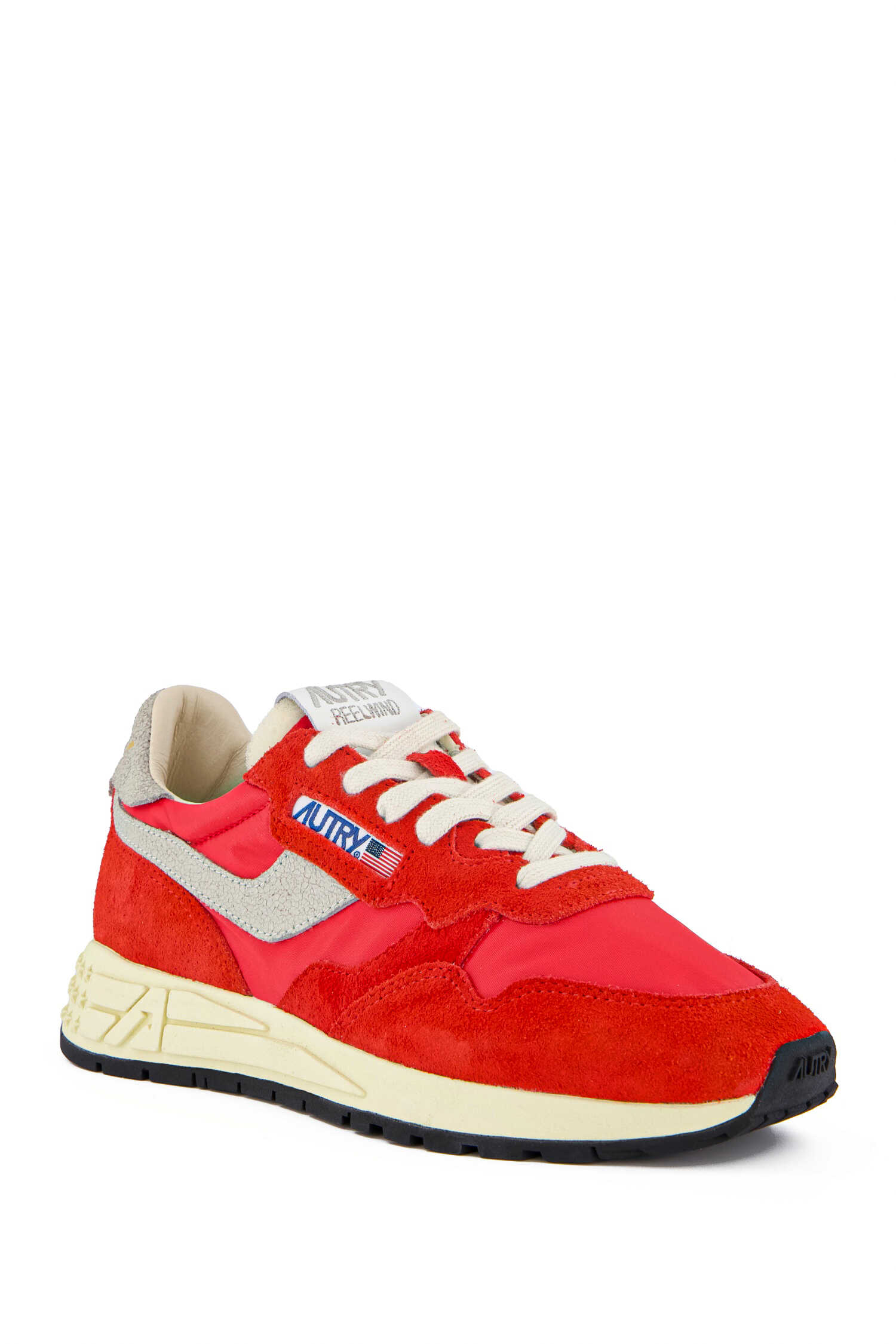 `Autry nylon and suede sneakers, with side logo, raised sole at the back with logo detail.`
