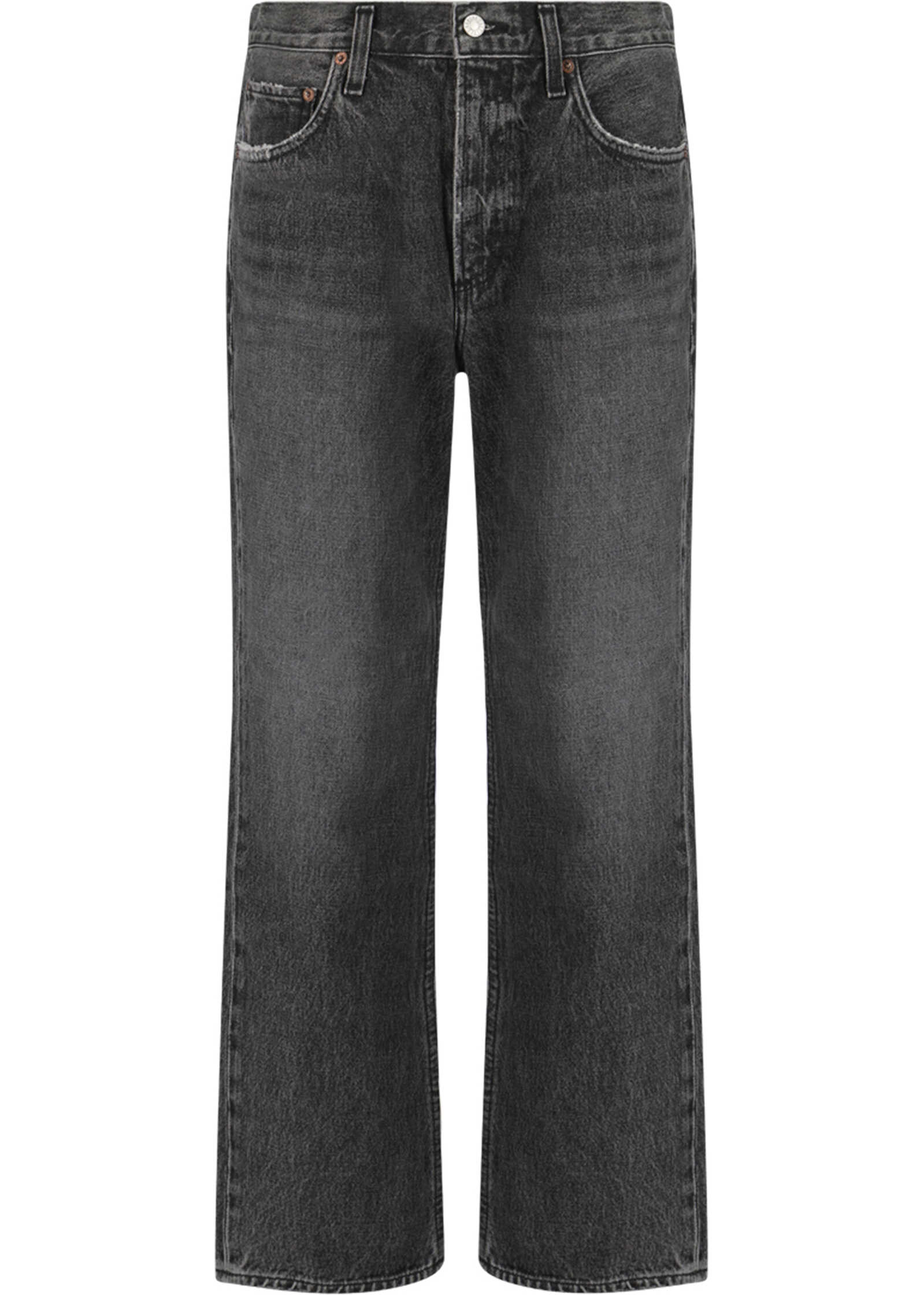 Cotton Denim Pants by Agolde, five-pocket design, front button and zipper closure, waistband loops, monochrome pattern, regular fit.