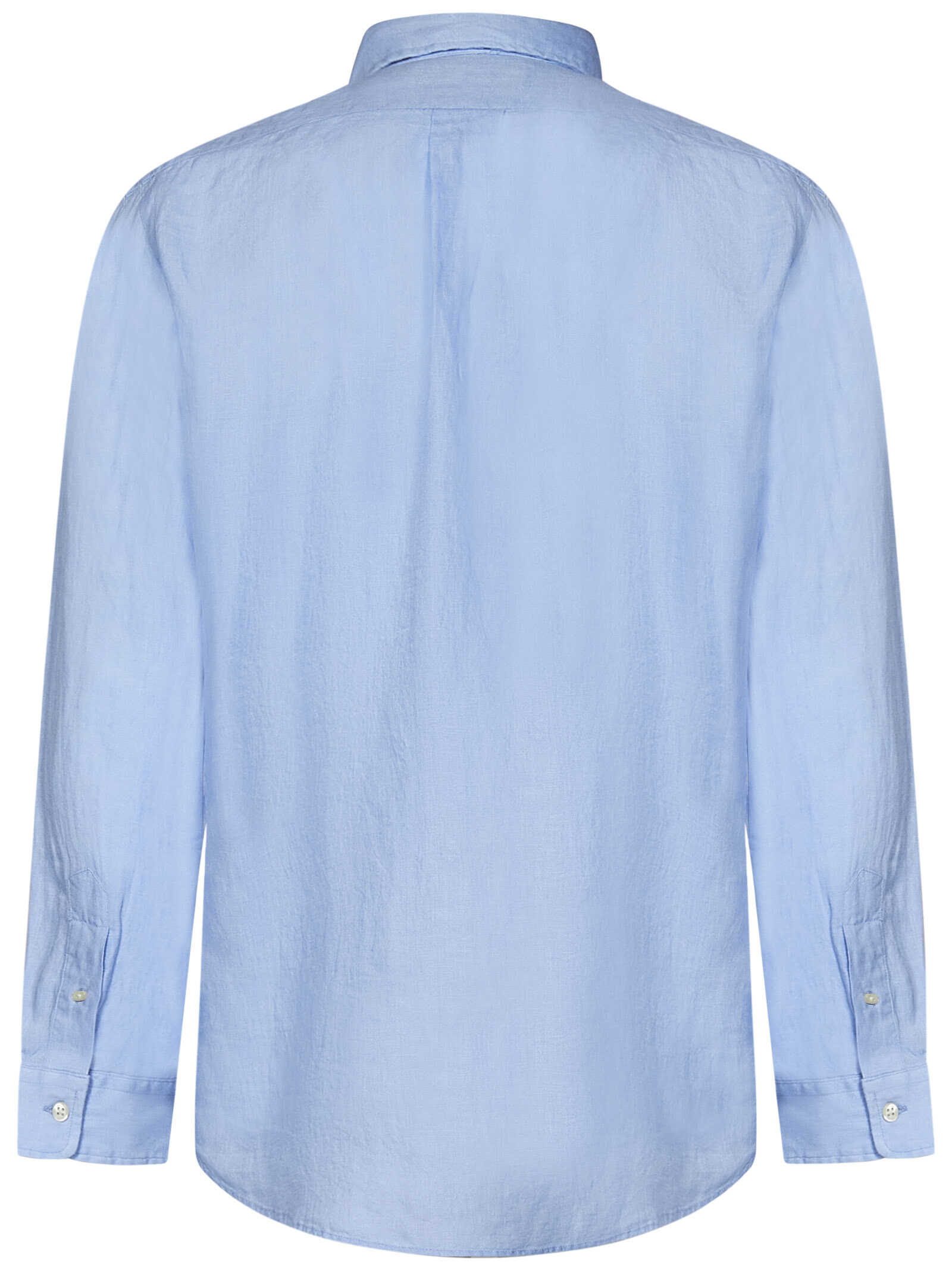 Custom-fit shirt with button-down collar in light blue linen with Pony embroidery on the chest.