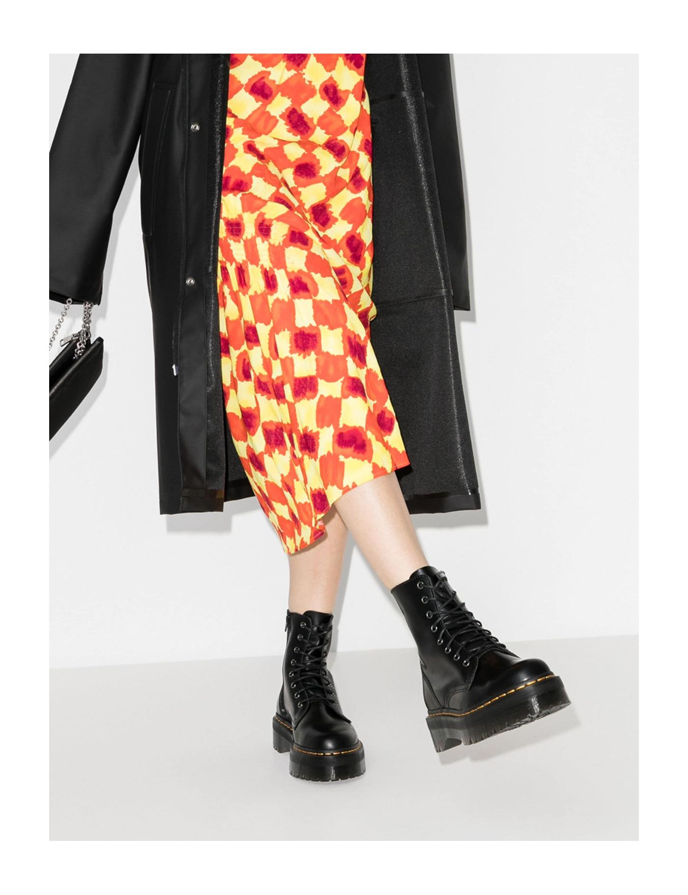 Elevate your look, literally and figuratively, with these Jadon platform boots from Dr. Martens. Crafted from the brand's Polished Smooth leather and detailed with the signature yellow stitching, these lace-up pair are sure to add a classic edge to your ensemble.
