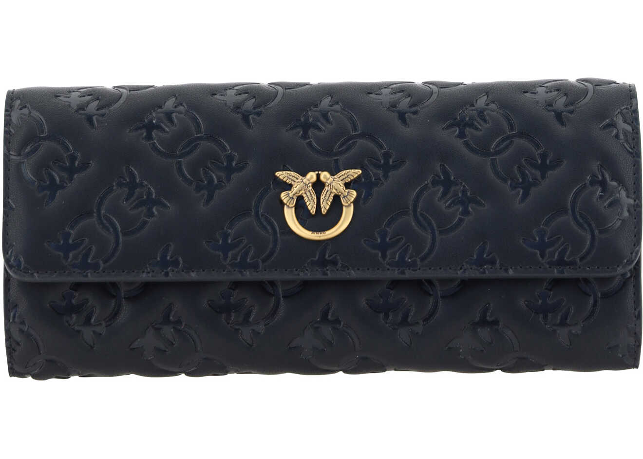 Wallet by Pinko, front closure by magnetic flap, iconic Love Tiny Birds logo printed by pressure and repeated all over, shoulder strap with chain detail, interior bill compartment, card slot, zippered coin pocket for closure.