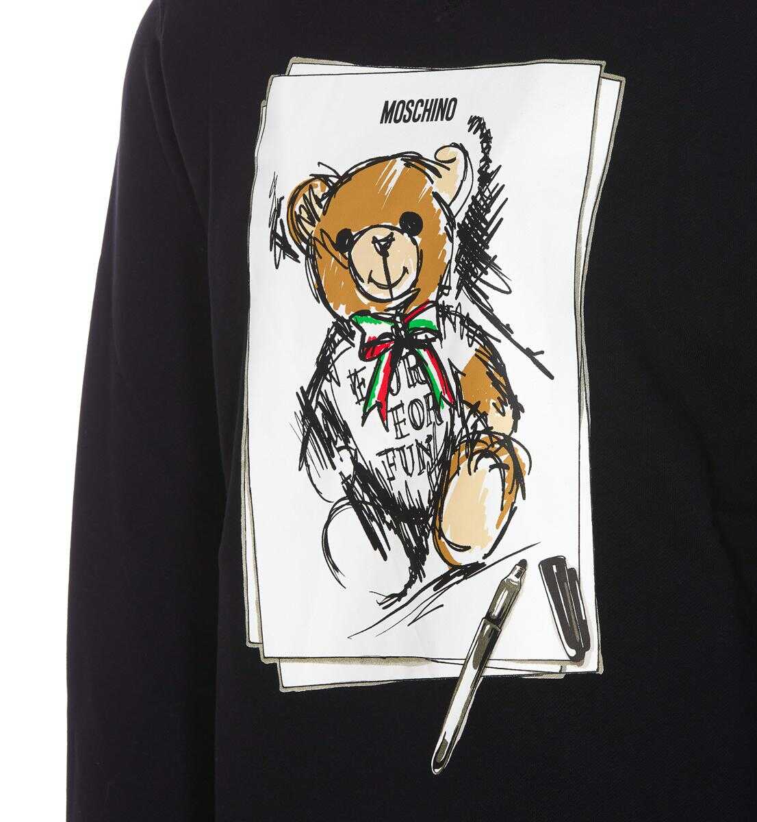 Moschino Black Sweatshirt, Crewneck, Drawn Teddy Bear Print Logo On The Front, Longsleeves, US SIZE