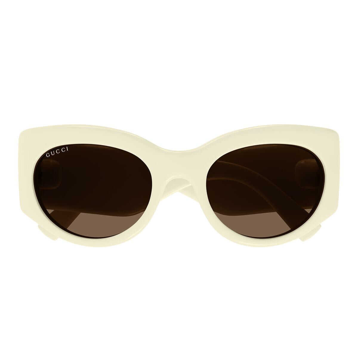 Sunglasses Gucci Eyewear Ivory Brown Oval Injected WOMEN