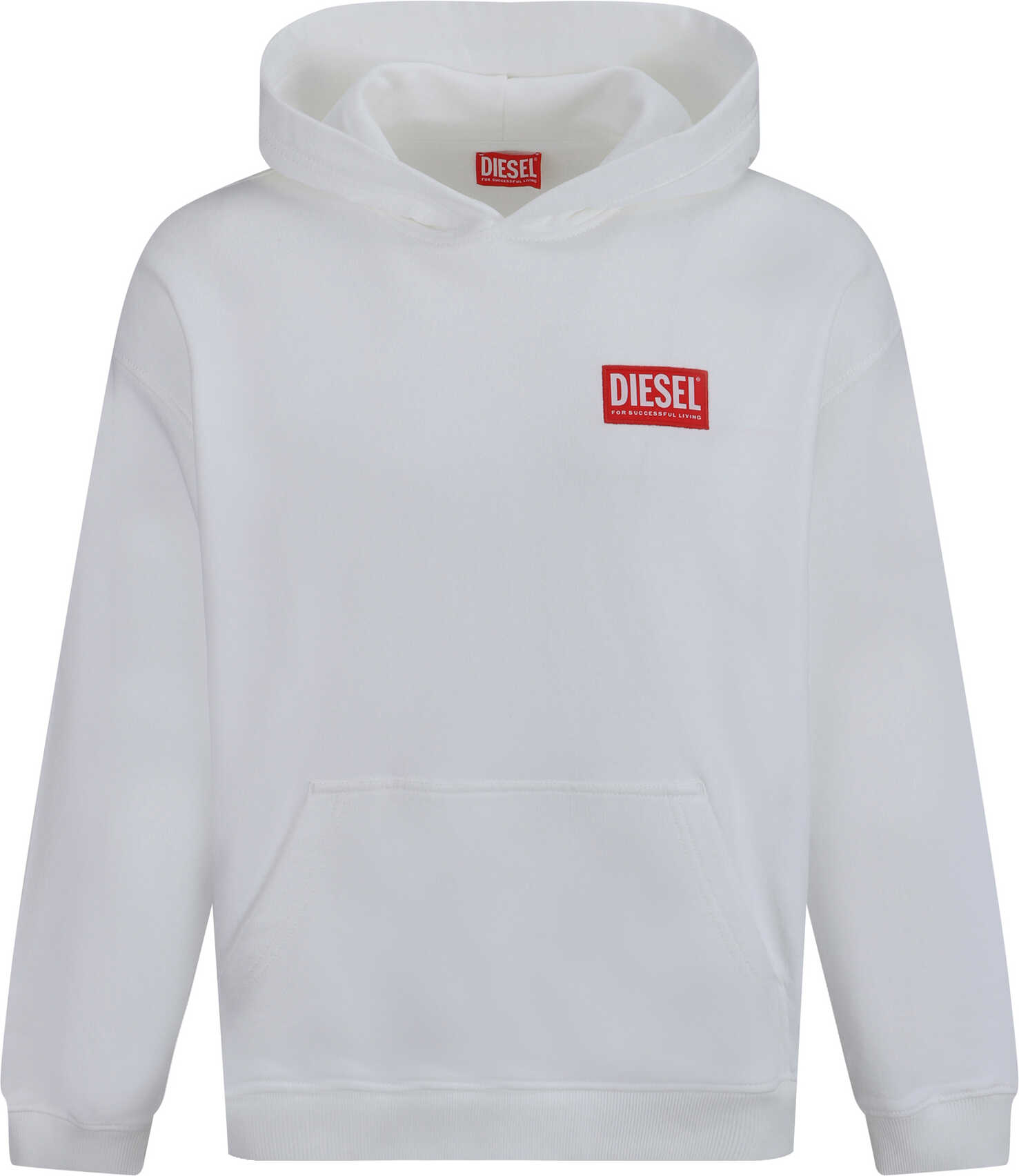 Cotton Hoodie by Diesel, features ribbed cuffs, ribbed hem, front kangaroo pocket, iconic brand monogram printed in contrast on front, regular fit.