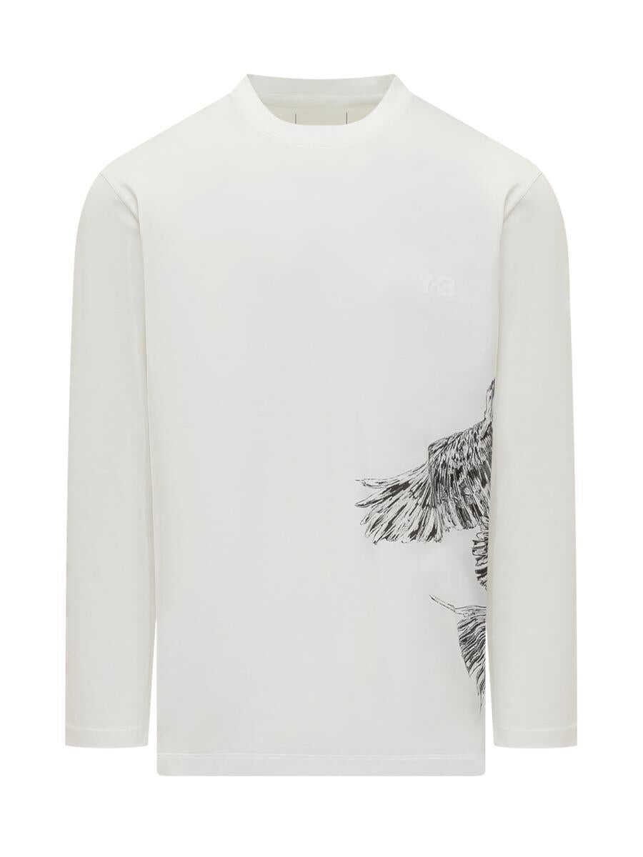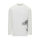 White sweater with long sleeves. Crew neck. Print on the side.
