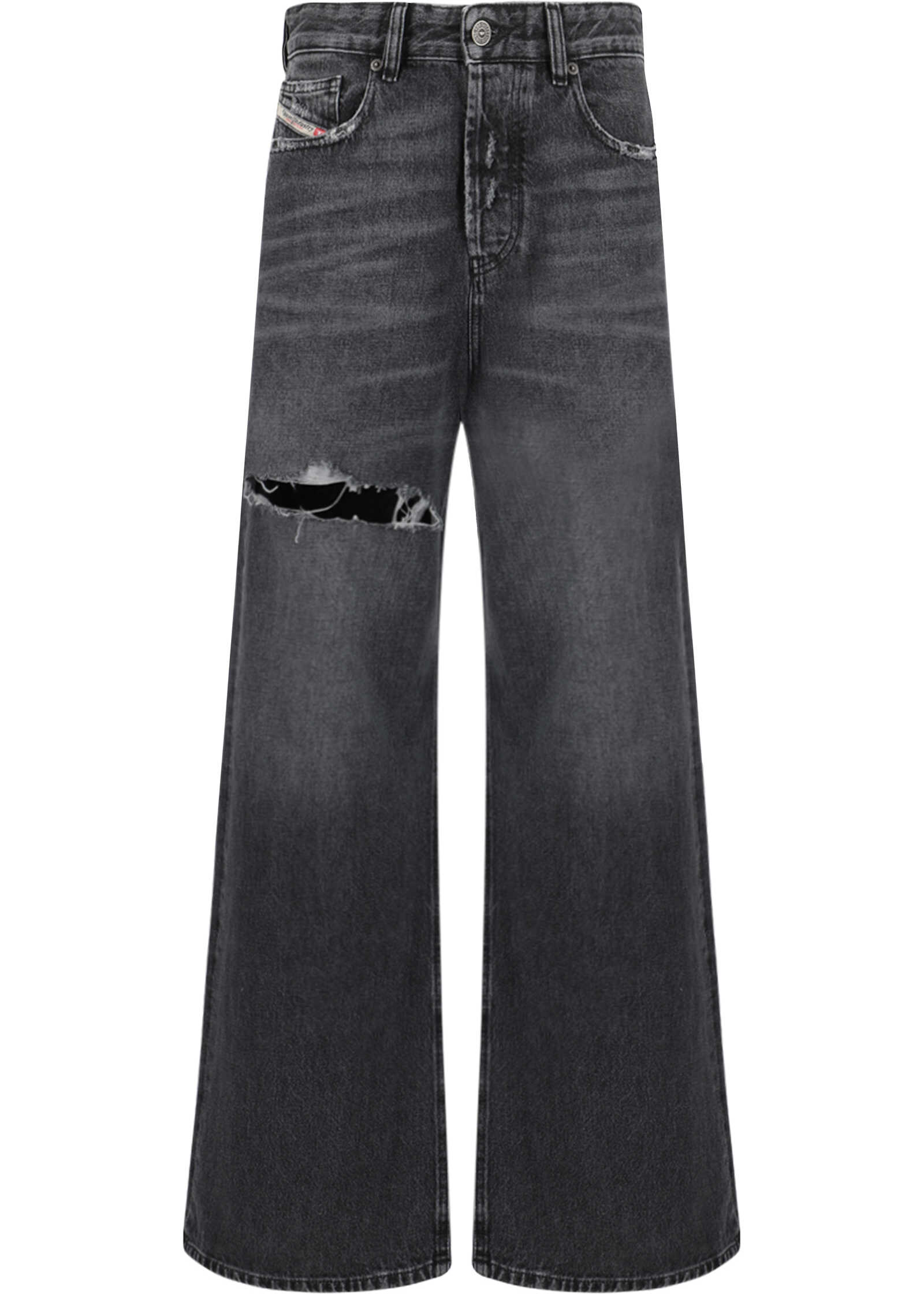 Cotton 1996 D-Sire Jeans by Diesel, five-pocket design, front button closure, front button closure, waist belt loops, iconic leather patch with brand signature pressure-printed applique at back, vintage worn-effect design.