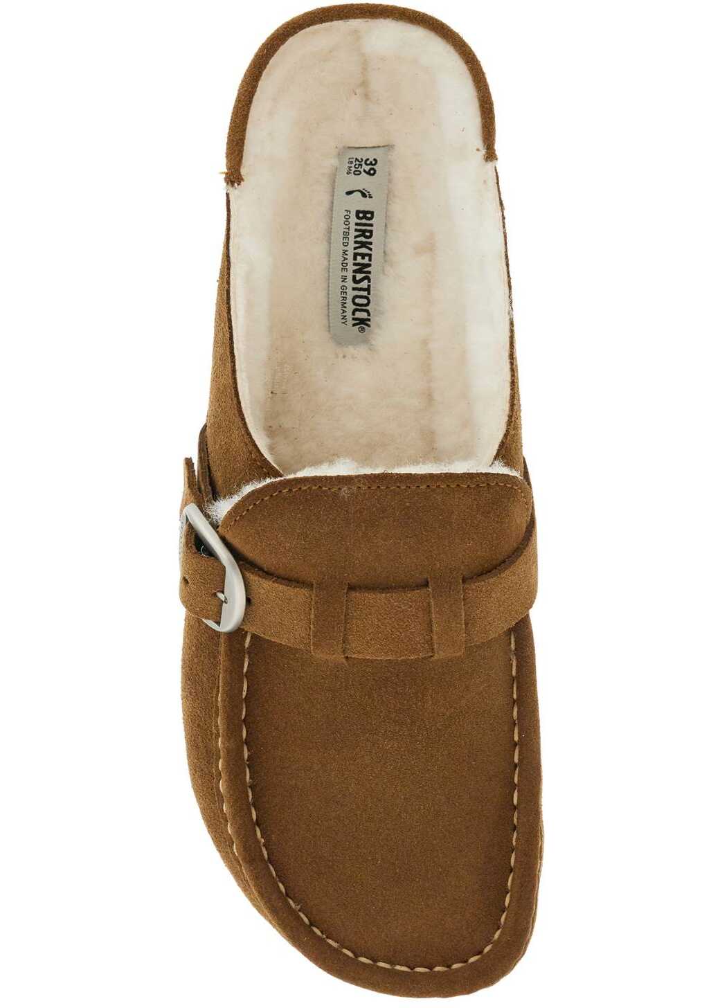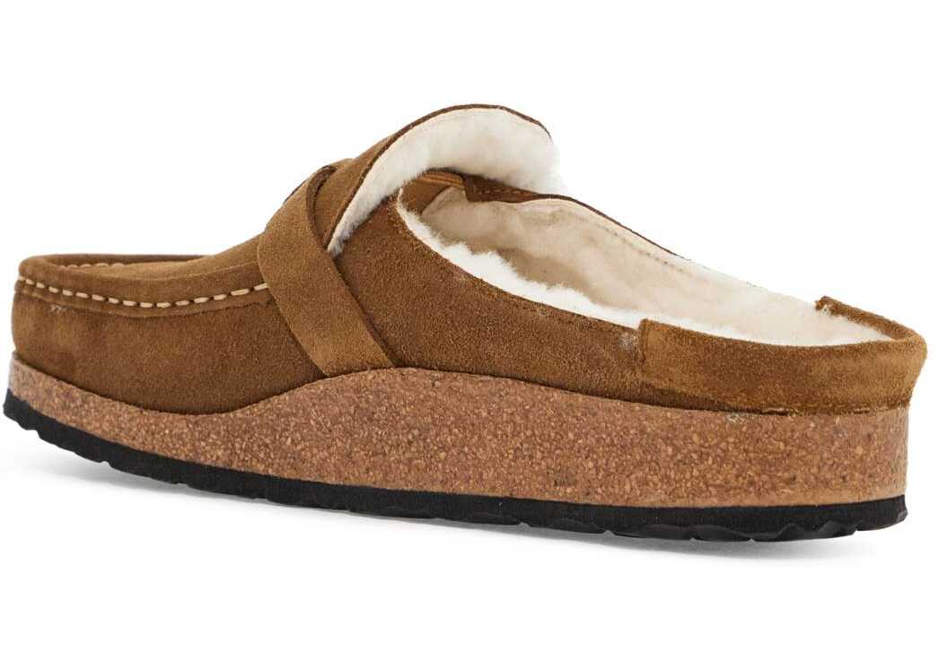The Buckley Mules by Birkenstock are made of suede leather with an adjustable strap and lined with sheepskin. They feature an anatomical cork and latex footbed and an EVA sole. The fit is narrow.