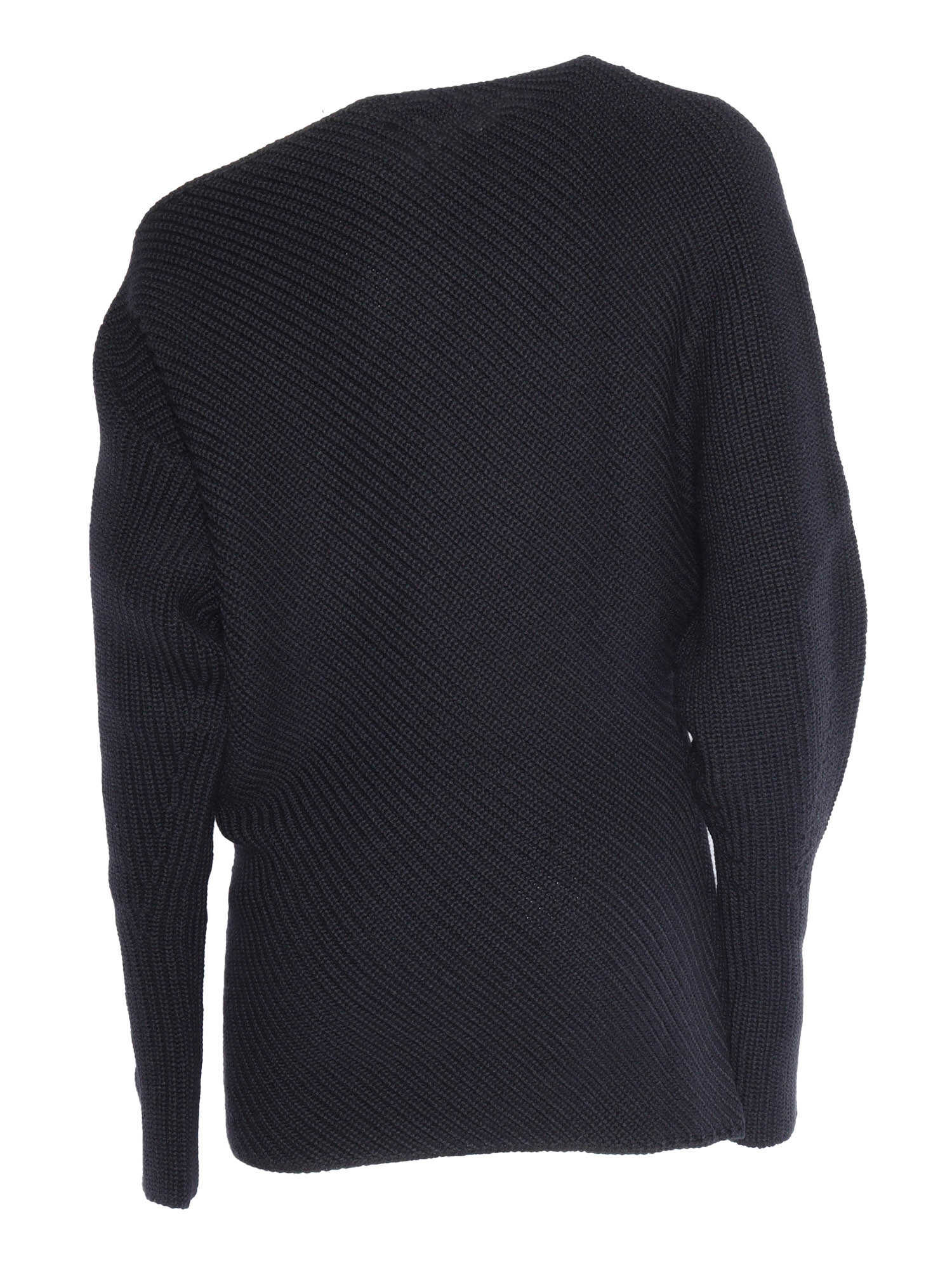 Sophistication and comfort meet in this black sweater in 50% virgin wool and 50% acrylic. With its asymmetric design and long sleeves, this shirt offers a comfortable fit and a modern look. The high quality fabric makes it ideal for facing the cooler days in style. Perfect for creating elegant or casual outfits, add it immediately to your wardrobe for a sophisticated and versatile look.