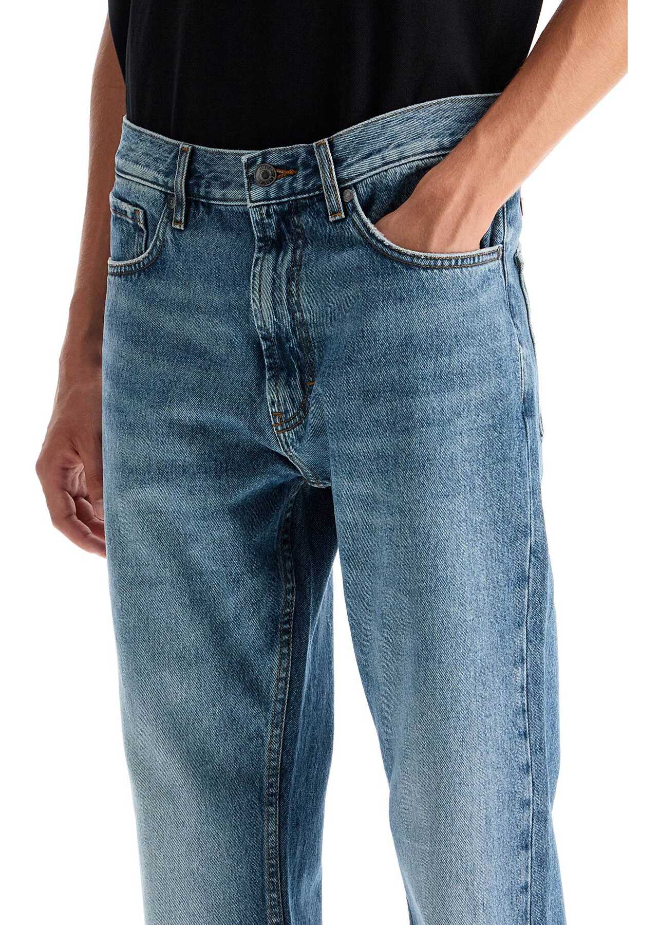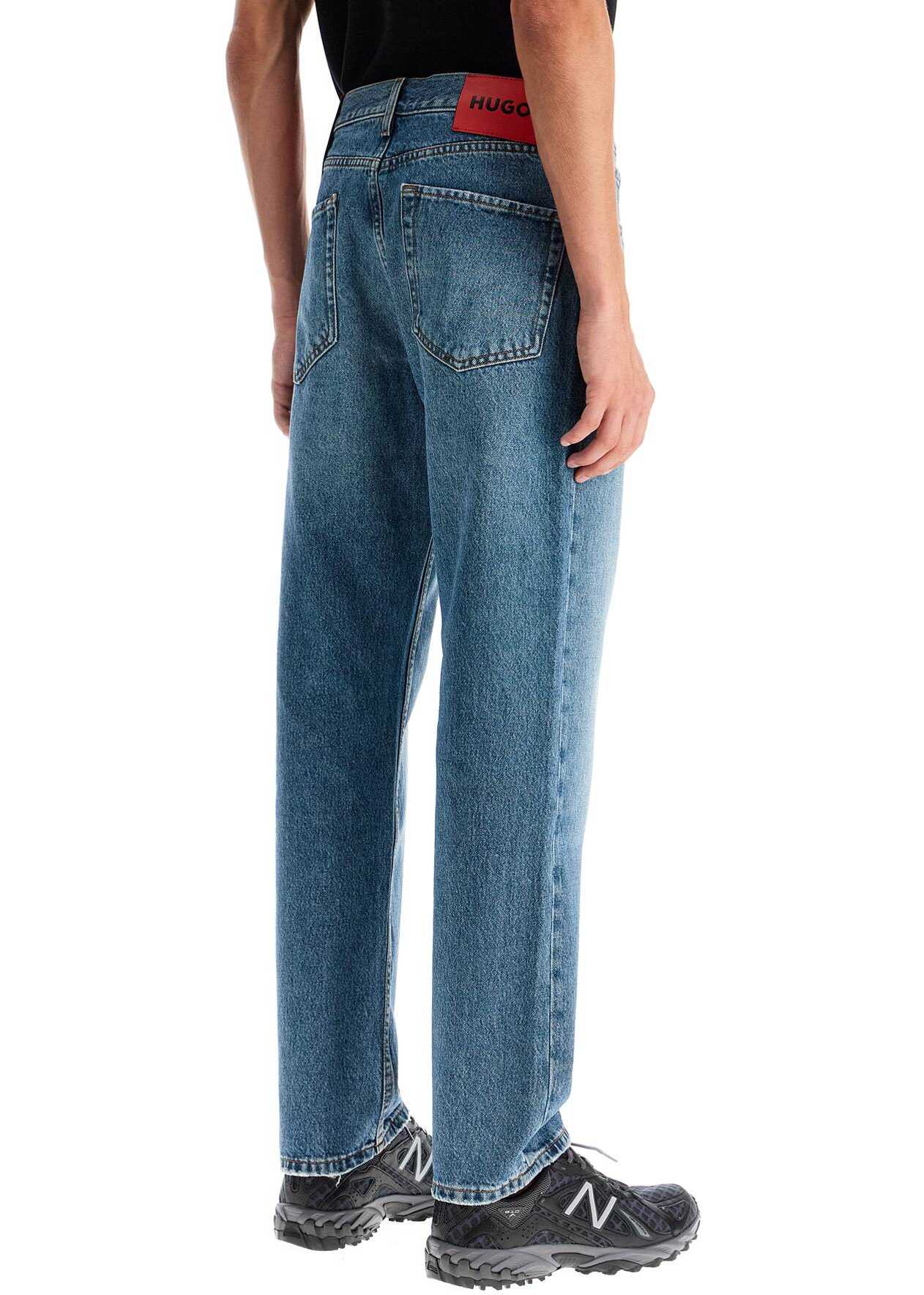 Hugo five-pocket jeans in distressed denim, featuring a regular fit with straight leg and low waist. Belt loops, zip and button closure. The model is 187 cm tall and wears size 31.