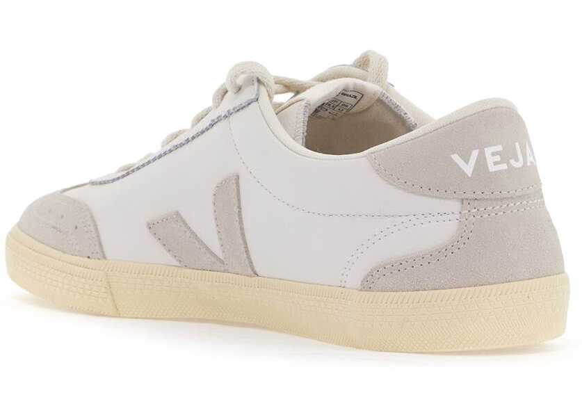 Veja's Volley sneakers are made with O.T. leather and contrasting suede inserts. They feature a front lace-up closure, embroidered logo patch on the tongue, and a lined interior with a removable insole. The iconic V is also present in contrast on both the insole and Amazonian rubber sole.