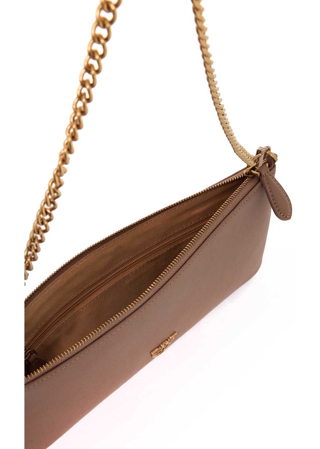The Pinko Horizontal Flat shoulder bag is made of soft silk hand leather and features a flat and elongated design. Decorated with classic Love Birds in metal, it is complete with a zip closure, lined interior with a zip pocket and three credit card slots. The chain handle and antique gold hardware add a touch of elegance to this bag.