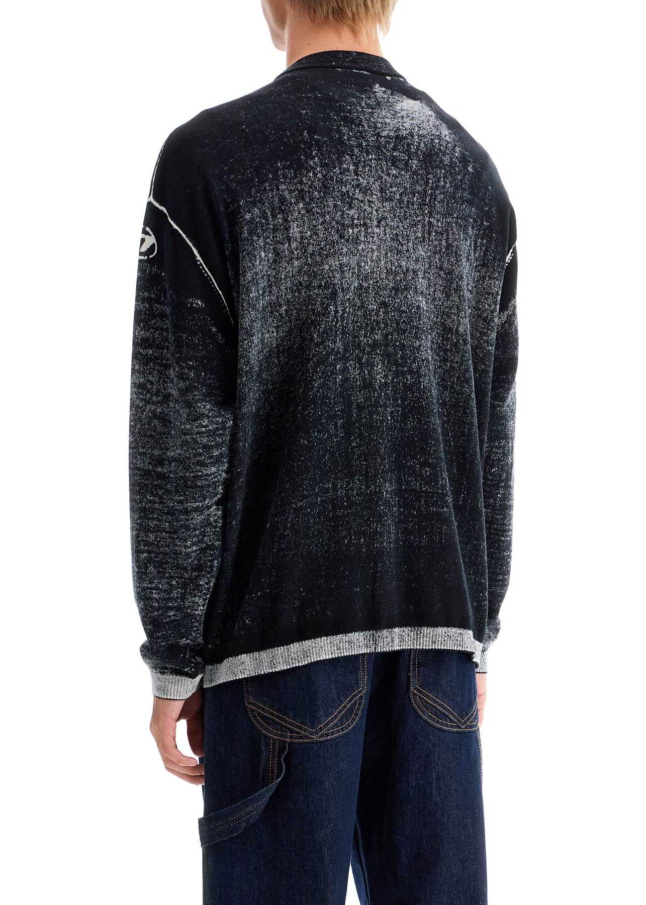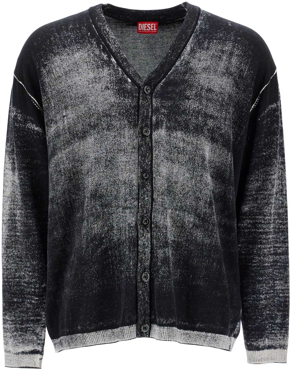 The K-Larence cardigan by Diesel is made of soft gassed cotton yarn and features a print on the inside, creating a faded and non-uniform coloration. The effect of this technique is particularly visible on the edges where the shade is much lighter. Classic V-neckline, button closure, relaxed fit. The model is 187 cm tall and wears size L.