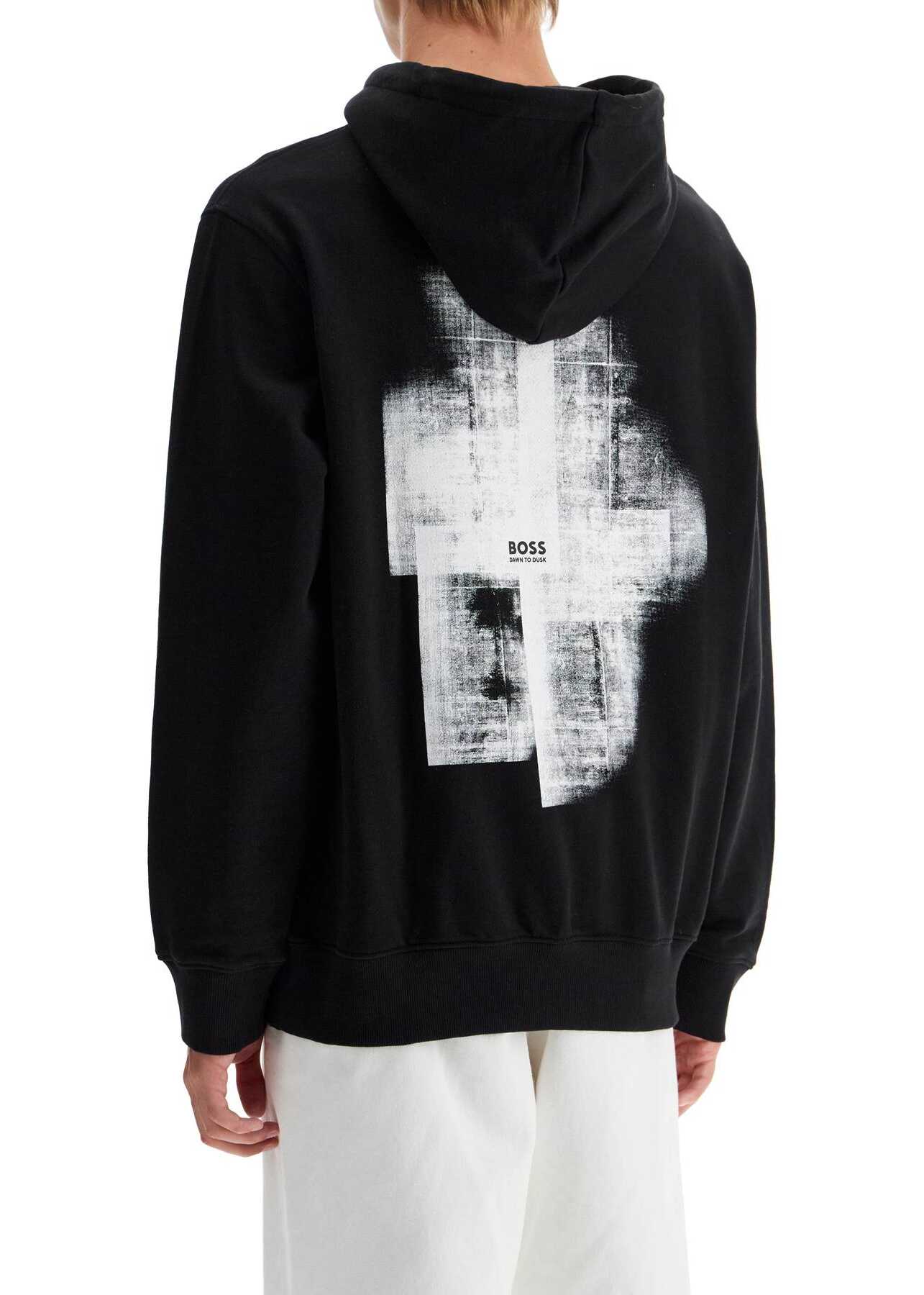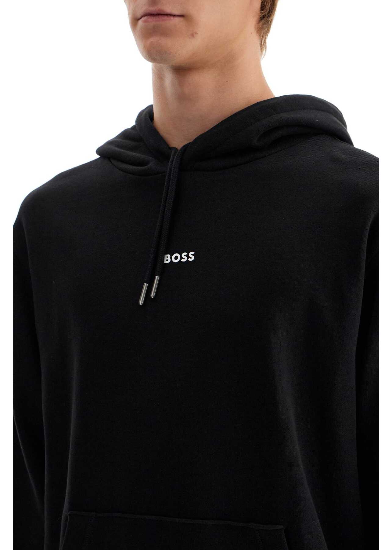 This BOSS hoodie is made of brushed cotton jersey and features a rubberized logo detail on the chest and a graphic print on the back. It has an adjustable drawstring hood, ribbed cuffs and hem, and a front kangaroo pocket. The relaxed fit makes it comfortable to wear. The model is 187 cm tall and wears a size L.