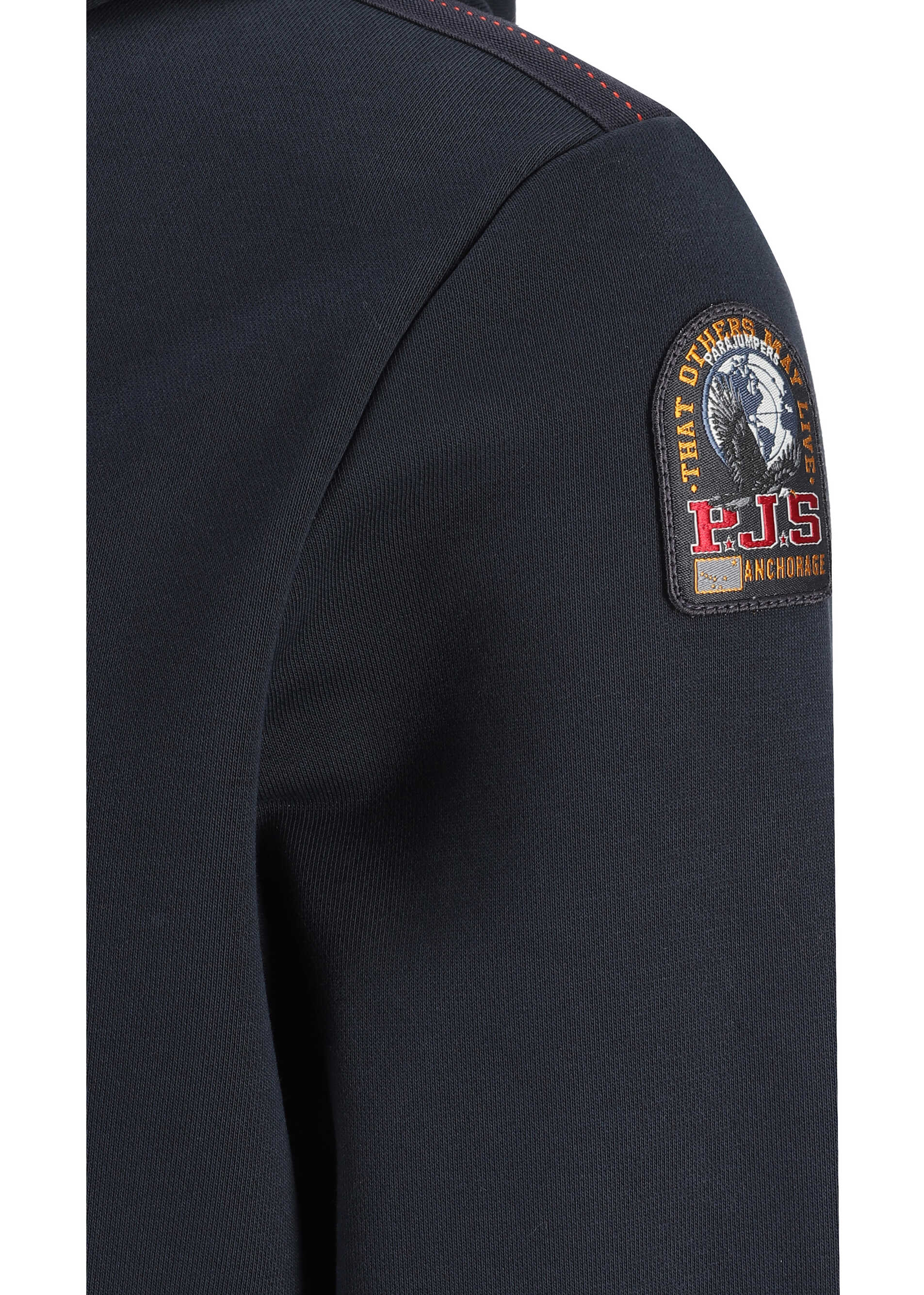 Cotton Everest Hoodie by Parajumpers features hood with adjustable drawstring, ribbed cuffs, ribbed hem, front kangaroo pocket, iconic brand monogram patch applied to left sleeve, plush interior, regular fit.