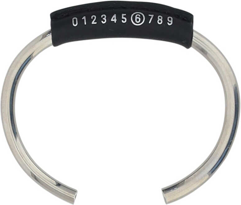 Bracelet by MM6, leather trim, distinctive logo with numbers, open design.