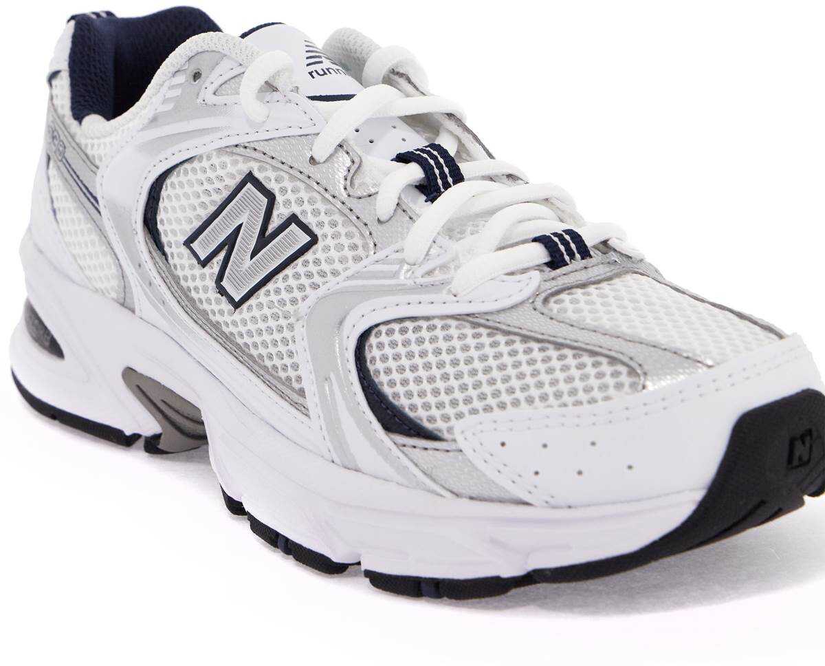 New Balance 530 sneakers made of mesh with laminated and smooth leather inserts. Iconic side N patches, logo print on tongue, fabric interior with removable insole, rear grosgrain loop tab and ABZORB® rubber outsole.